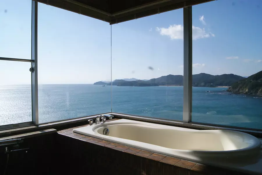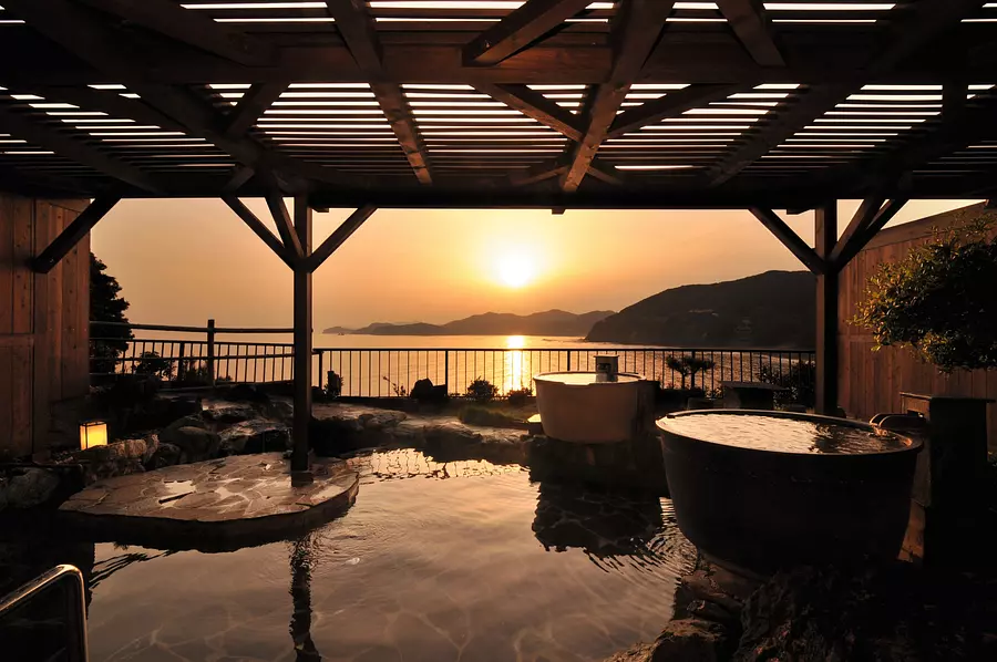 温泉もまた絶景!露天風呂で波の音を聞きながら、夜には満天の星を見上げてくつろげます。