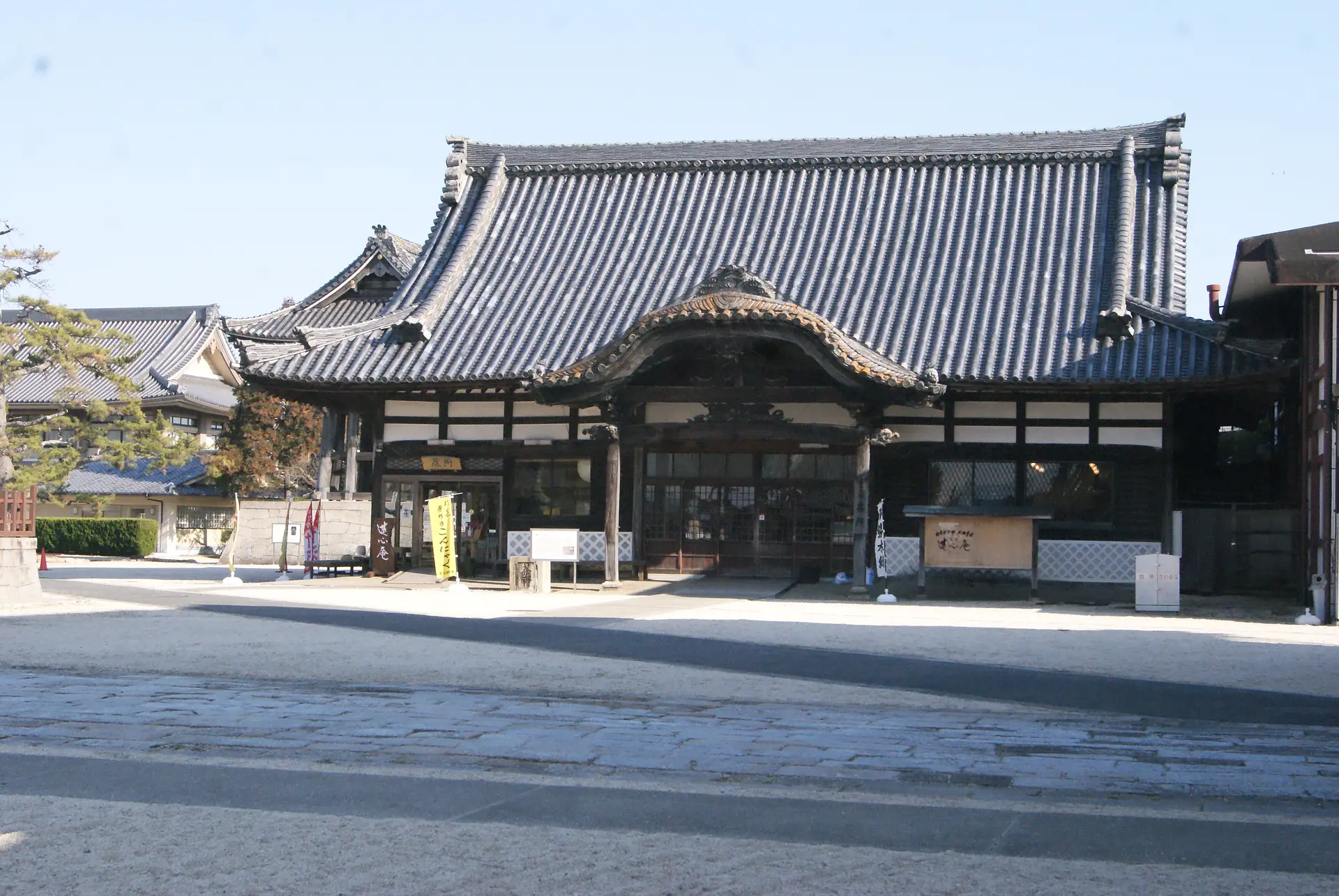 「御影堂」「如来堂」をじっくりと堪能した後は、山門の右手ある「茶所(ちゃじょ)蓮心庵(れんしんあん)」で休憩です。お茶や甘味、軽食、おみやげを楽しめるお茶処となっています。「スマホでみえ得キャンペーン」が楽しめるのはこちらです。