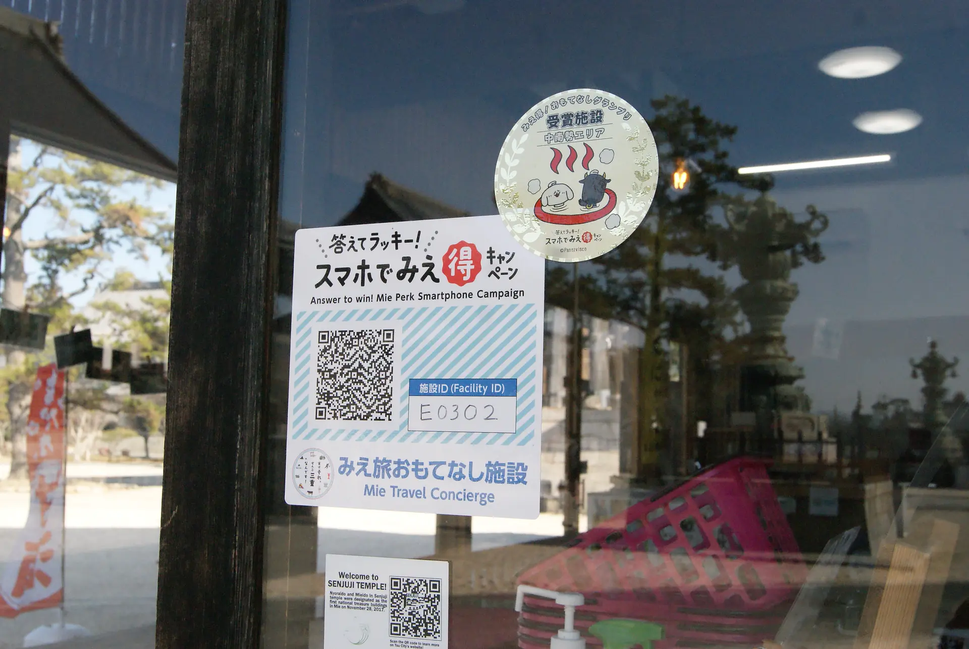 蓮心庵の出入り口横のガラスには、「おもてなしグランプリ」入賞のシールがキラリ!と輝いています。