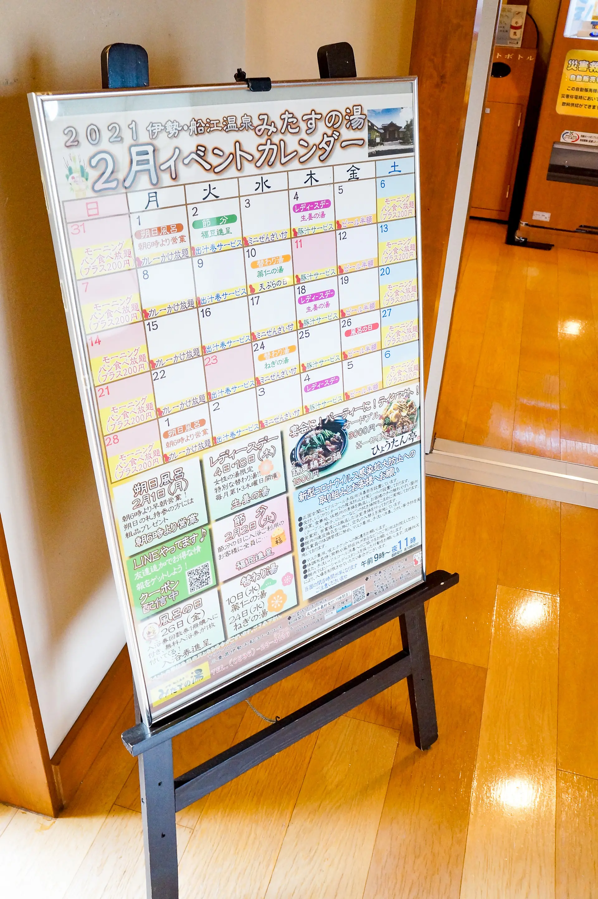毎月2回ずつ、水曜は「替わり湯」の日、木曜は「レディースデー」として女湯が特別なお湯に変わります!