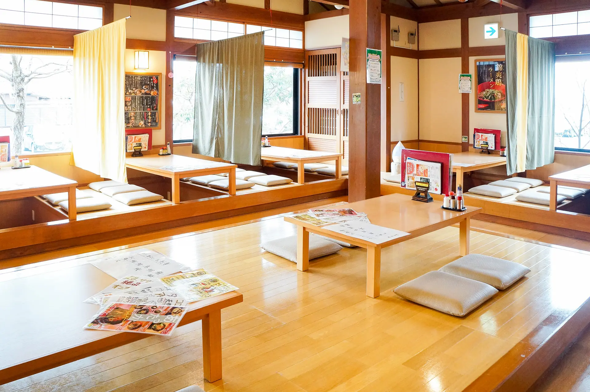 店内はゆったりと空間をとった広いお座敷席と、おひとり様にもうれしいカウンター席があります。