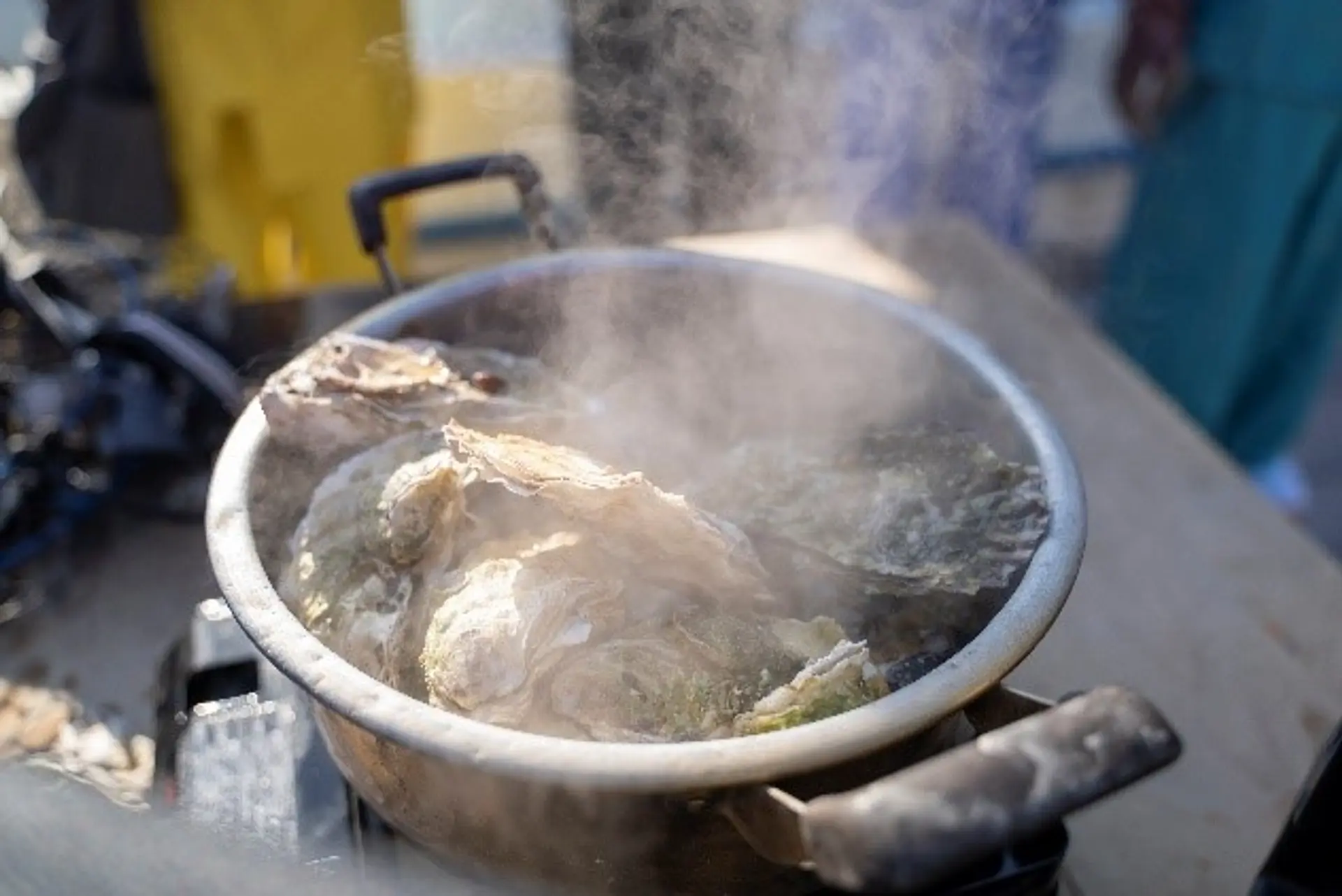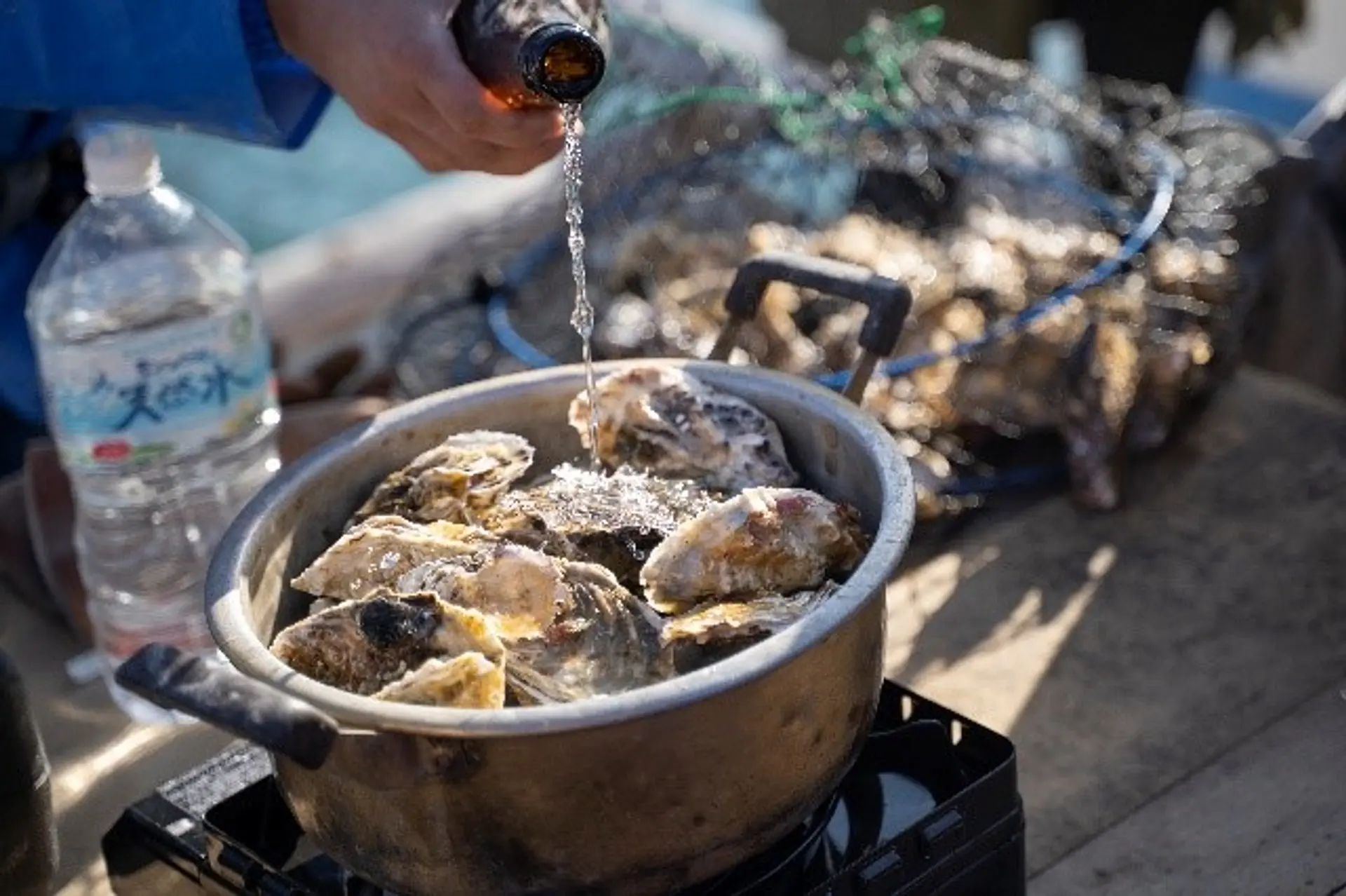 牡蠣の収穫を終えた後は、絶品の蒸し牡蠣を試食する。これほど手間をかけて養殖していることを教えてもらってから食べる牡蠣は、普段とは一味も二味も違う、とれたて特有のぷりぷりした食感と濃厚な味はここでしか味わえない。食べきれない分の牡蠣はお土産としてもお持ち帰り可能だ。