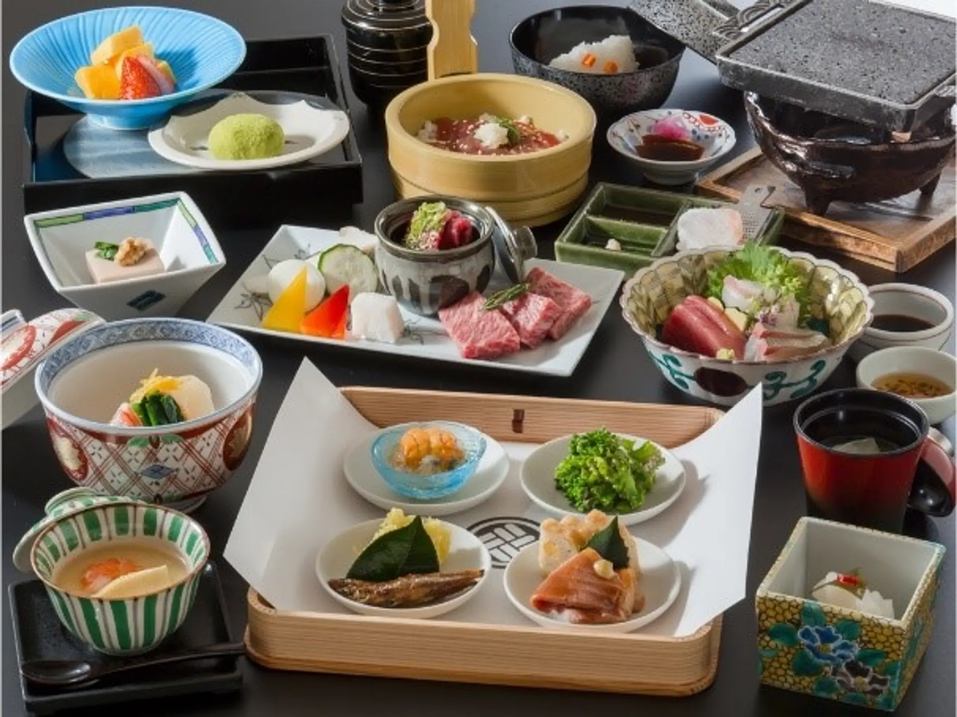 夕食は、館内のレストランで月替わりの会席料理に舌鼓を打つ。伊勢海老や松阪牛等日本有数の食材の宝庫、伊勢ならではの料理を堪能しよう。