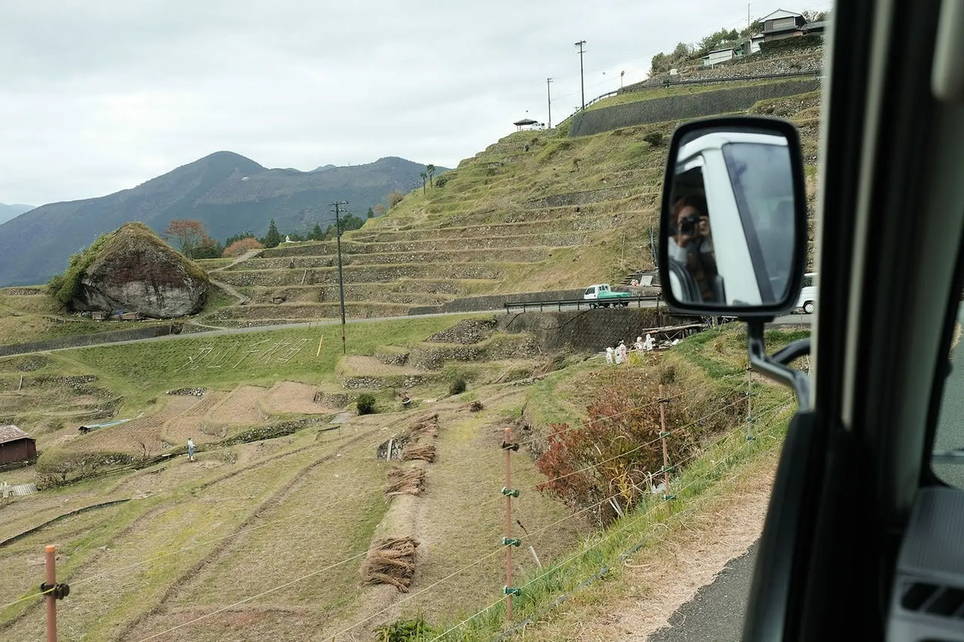 13:30 海沿いの道の駅熊野花の窟お綱茶屋でめはり寿司を購入し、丸山千枚田へ。