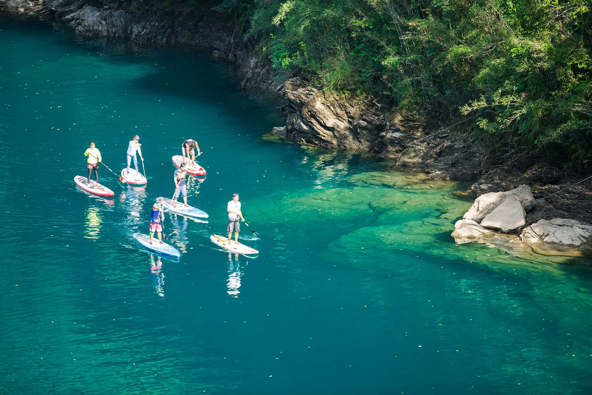 フェアフィールド・バイ・マリオット・三重おおだいは、日本に7つしかないユネスコエコパークにあり、周辺には日本有数の大自然を満喫できるアクティビティスポットが豊富で、なかでもおすすめなのがSUP。フィールドとなる宮川は水の流れが穏やかで、初心者や子どもでも安心して楽しめる。日本一の清流として名高く、底が見えるほど水が澄んでいることもしばしば。その他原生林が生い茂る大杉谷をフィールドにした登山など、コアなアウトドアファンも大満足のプログラムが満載だ。
