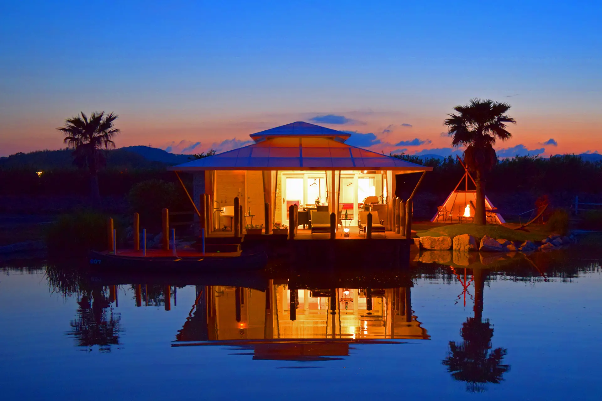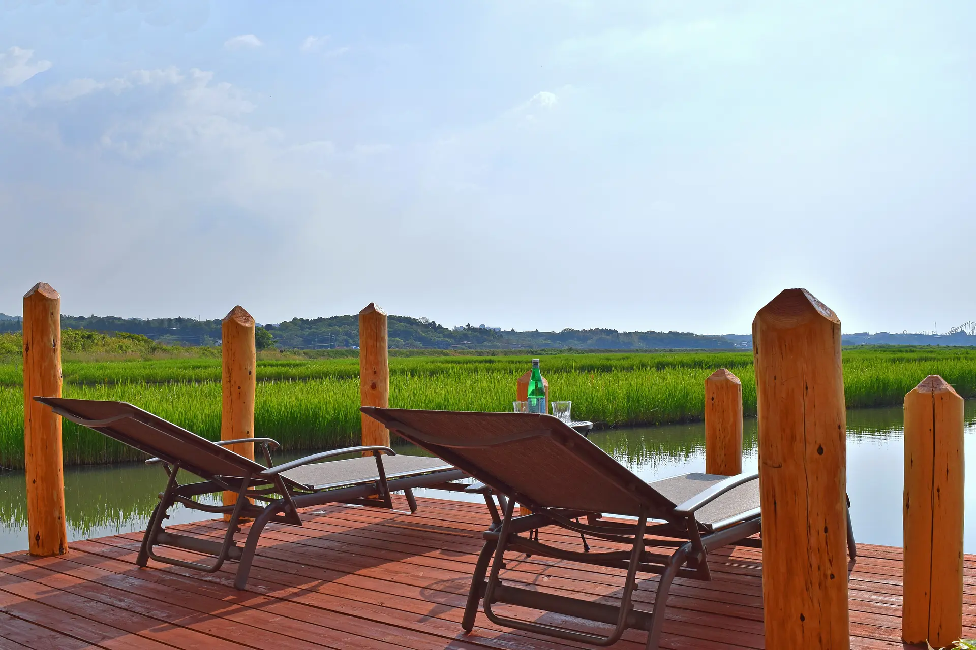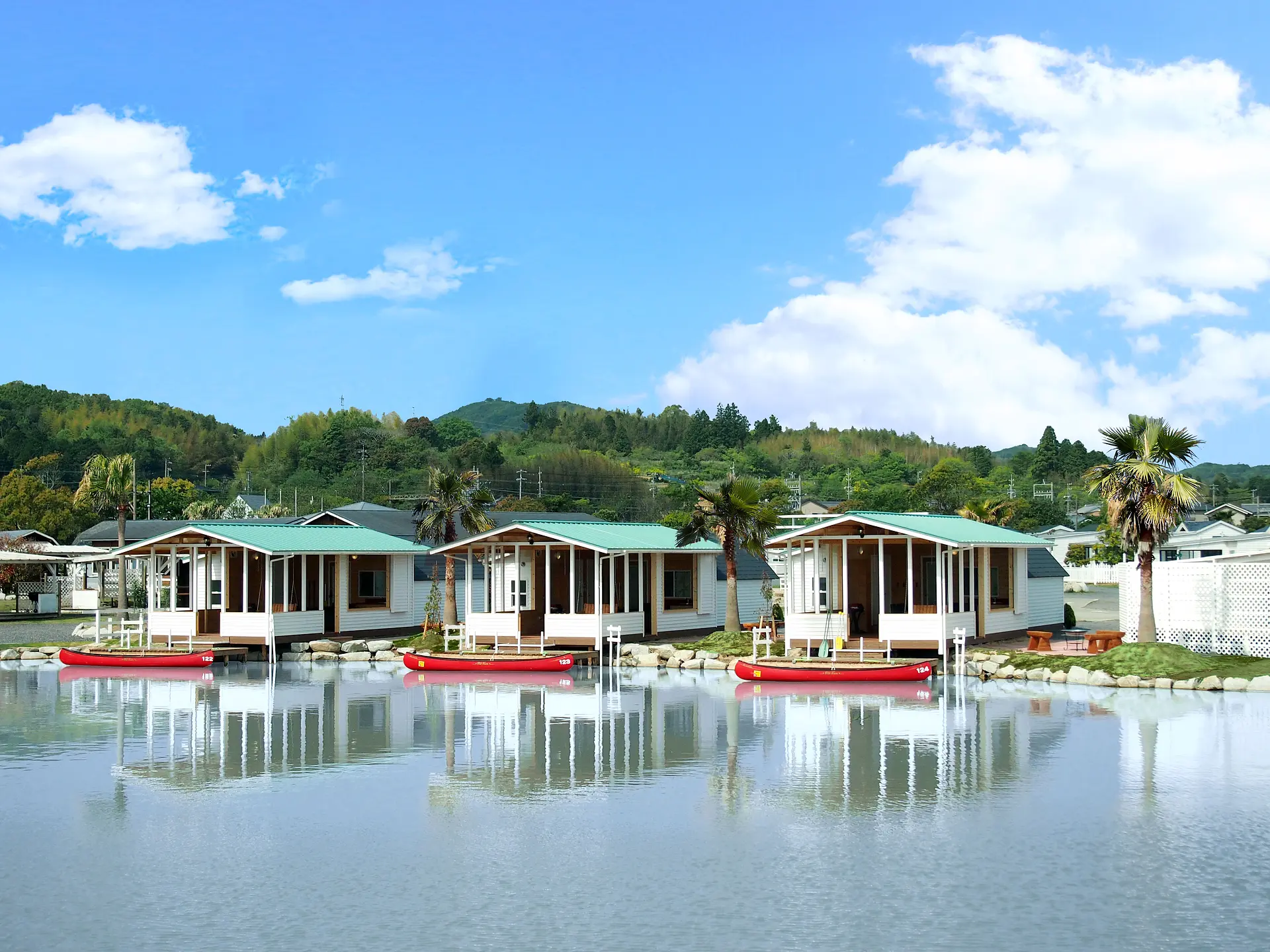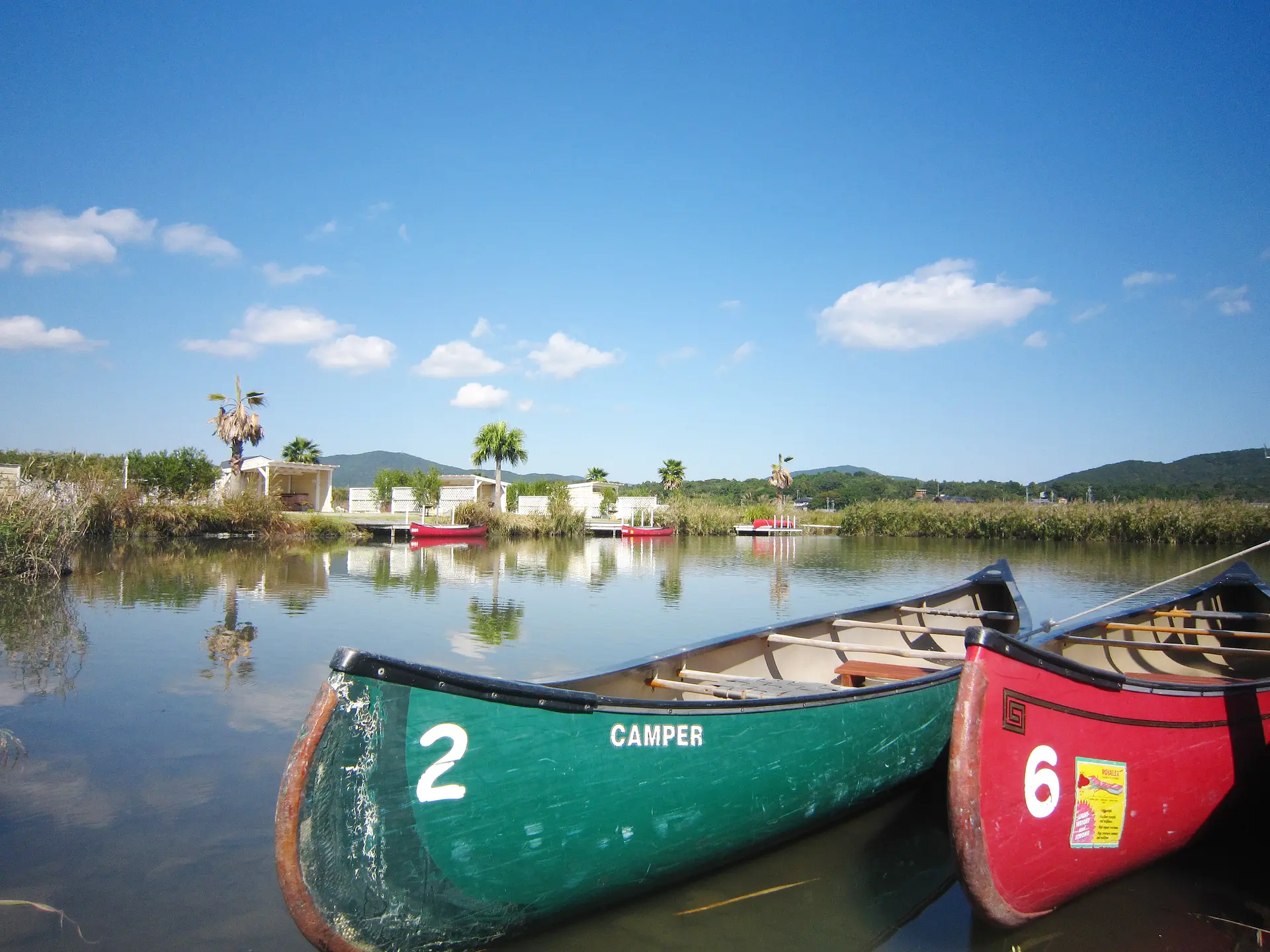 「グランピング」とは、「グラマラス/Glamorous(魅力的な)」と「キャンピング/Camping」をかけ合わせた言葉ですが、その名称に違わず、ここのグランピング施設は、すべてプライベートカヌーとファイヤーデッキ付き! 自分たちだけのゴージャスな時間を過ごせます。