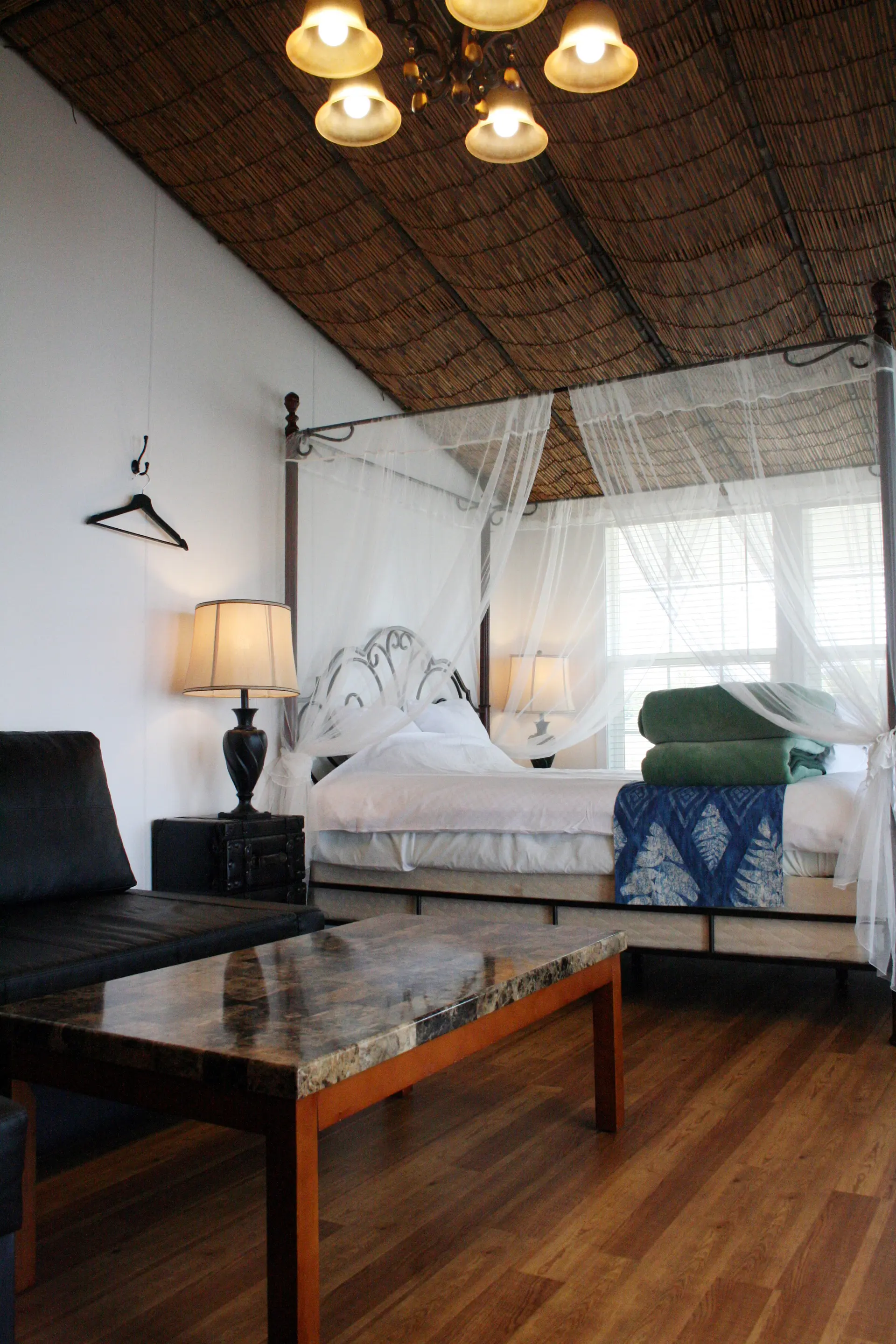 ペット連れの旅をしたい時は、この「ルイジアナ」がおすすめ。屋外にペット用の「ティピー(円すい型のテント)」や食器台があるので、愛するペットたちもストレスフリー。