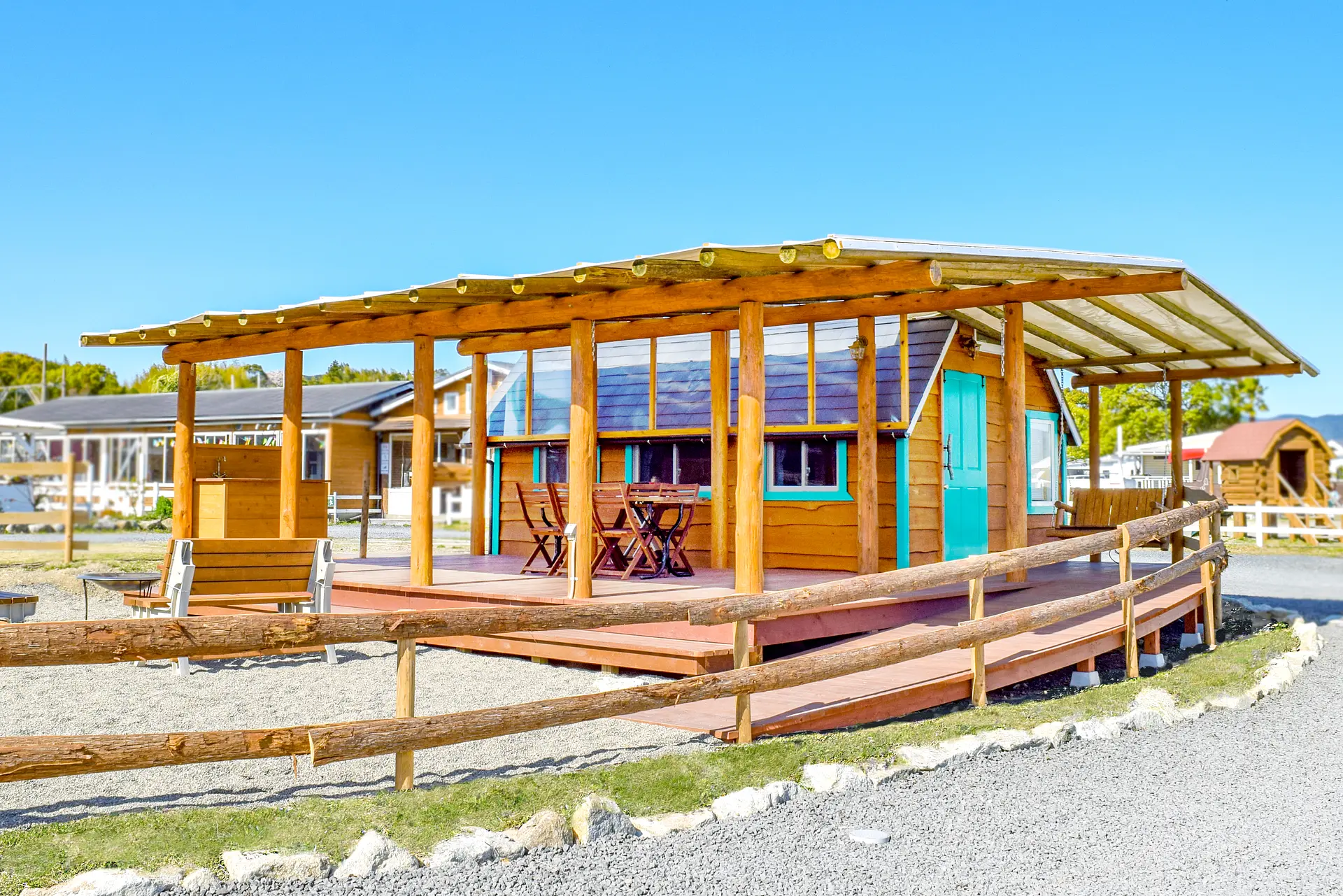 「メリーランド」はファミリー向けのキャビン。屋外にはクライミング付きスライダー、リビングには落書き自由の黒板があり、子どもが楽しめる工夫が施されています。