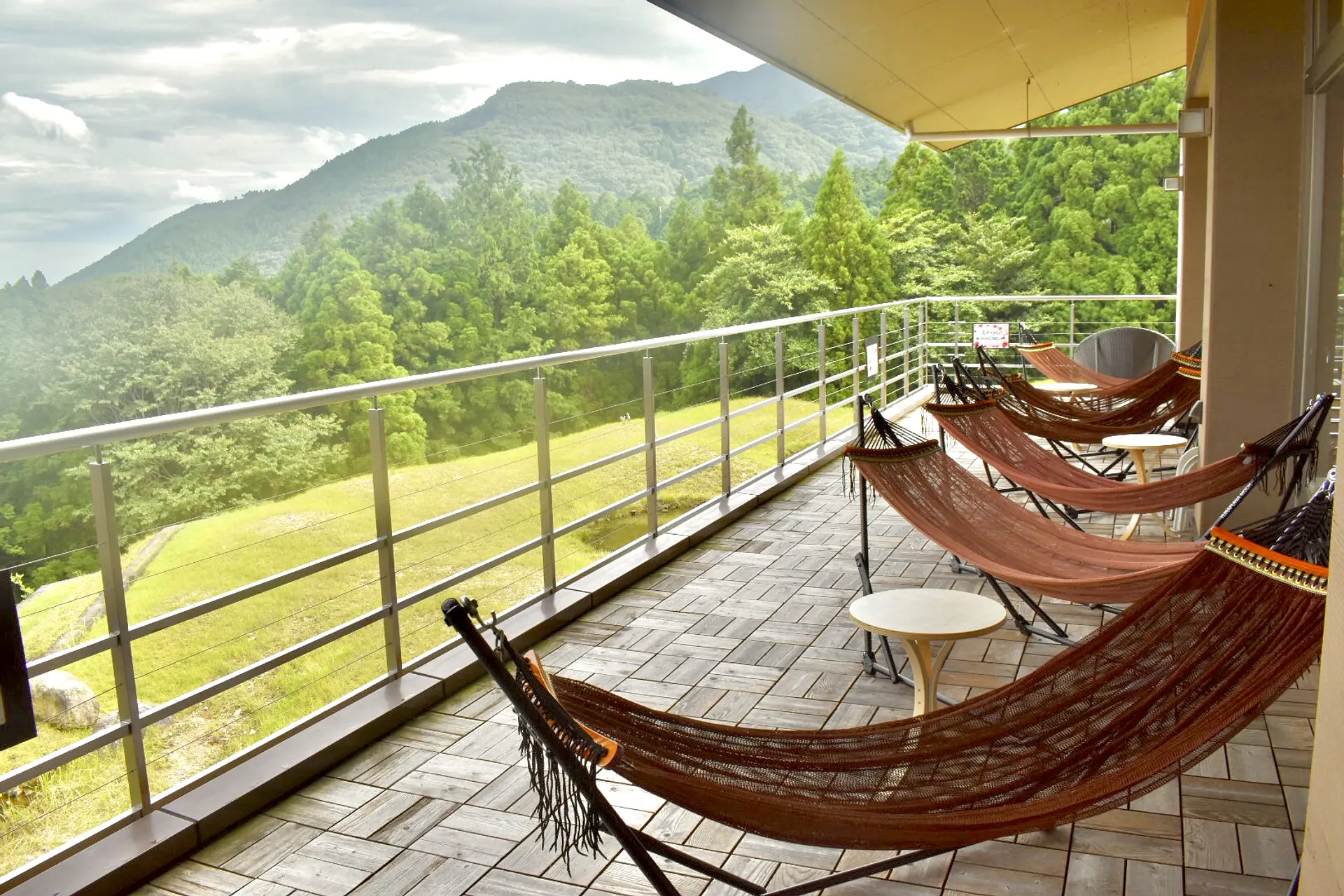 2日目の朝食後は、山上館の展望デッキで過ごすのが定番。ハンモックでゆらり揺れながら、のんびり〜。