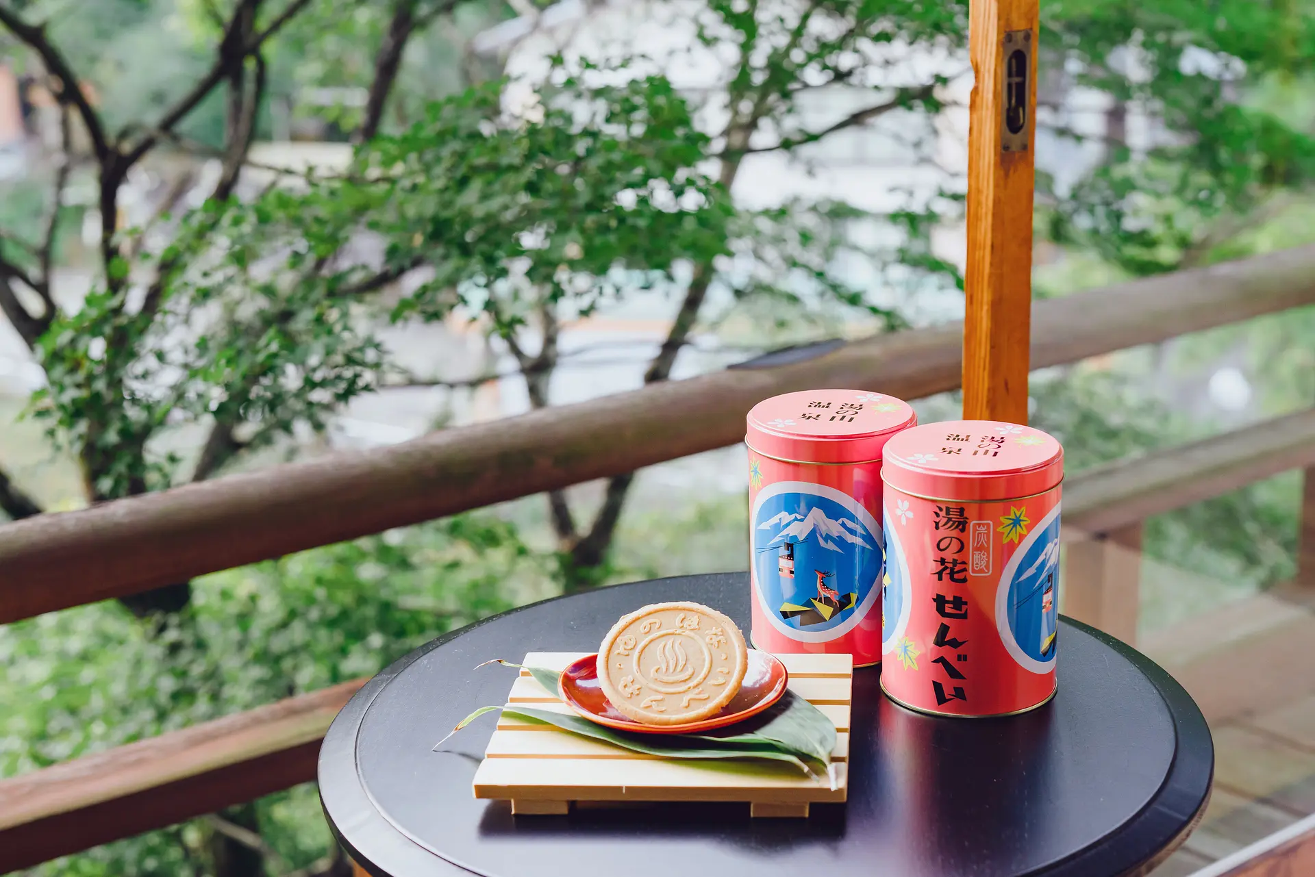 お土産としておすすめなのが、山上館のロビーにある「日の出屋製菓」の「湯の花せんべい」。サクサクとした食感の「炭酸せんべい」で、レトロなパッケージもかわいい!