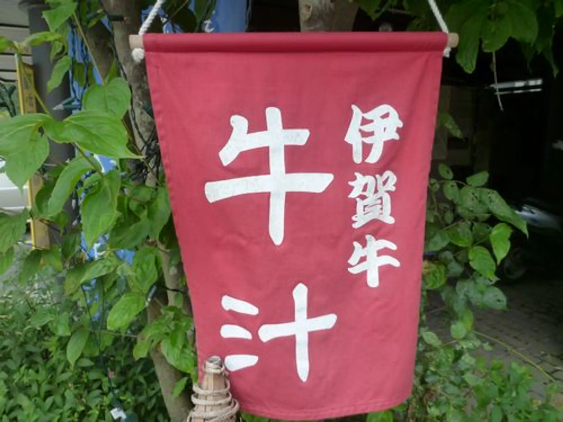 お昼は、やっぱりご当地グルメの「伊賀牛 牛汁」です。赤目四十八滝近くの「大日屋」さんでいただきました。食事や喫茶ができ、道をはさんでお土産屋さんもやっています。親切な店員さんも詳しく教えてくれますよ。なお、エンジの暖簾が、牛汁取扱店の目印です。