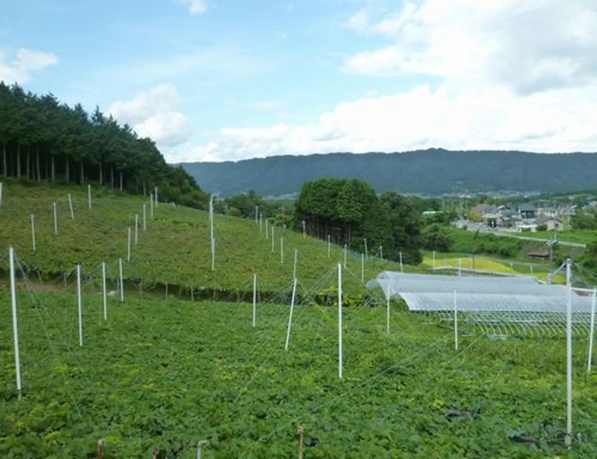 青蓮寺観光村はこの湖畔にあり、なだらかな丘陵地帯に、20箇所、約12haのぶどう園が広がっています。