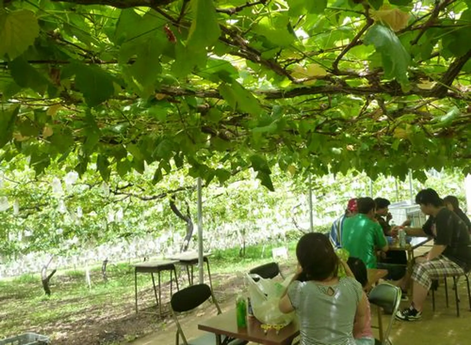 ぶどう棚の下では、小さなお子さん連れの家族やグループの方が、もぎたての瑞々しいぶどうをおいしそうに召し上がっていました。自分でぶどうが収穫できてすぐに食べられるので、お子さんも大喜び。私もお腹いっぱいデラウェアをいただきました☆