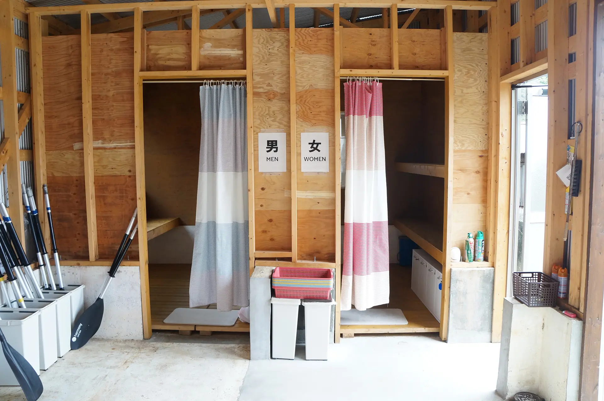 カヤック発着場所には男女別々の更衣室があるので、着替えが必要な場合はここで済ませておきましょう!