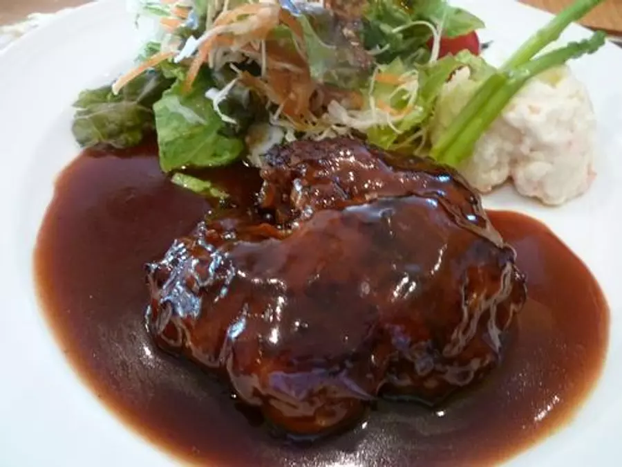 うきさとむらのかしわ焼き肉(980円)は、1食につき10円が、うきさとむら(宇気郷住民協議会)に寄付されるしくみになっているそうです。頼もうとしましたが売り切れだったので、奮発して、松阪肉100%を使用した松阪牛プレミアムハンバーグステーキ(1980円)をいただきました。おいしかったですよ。