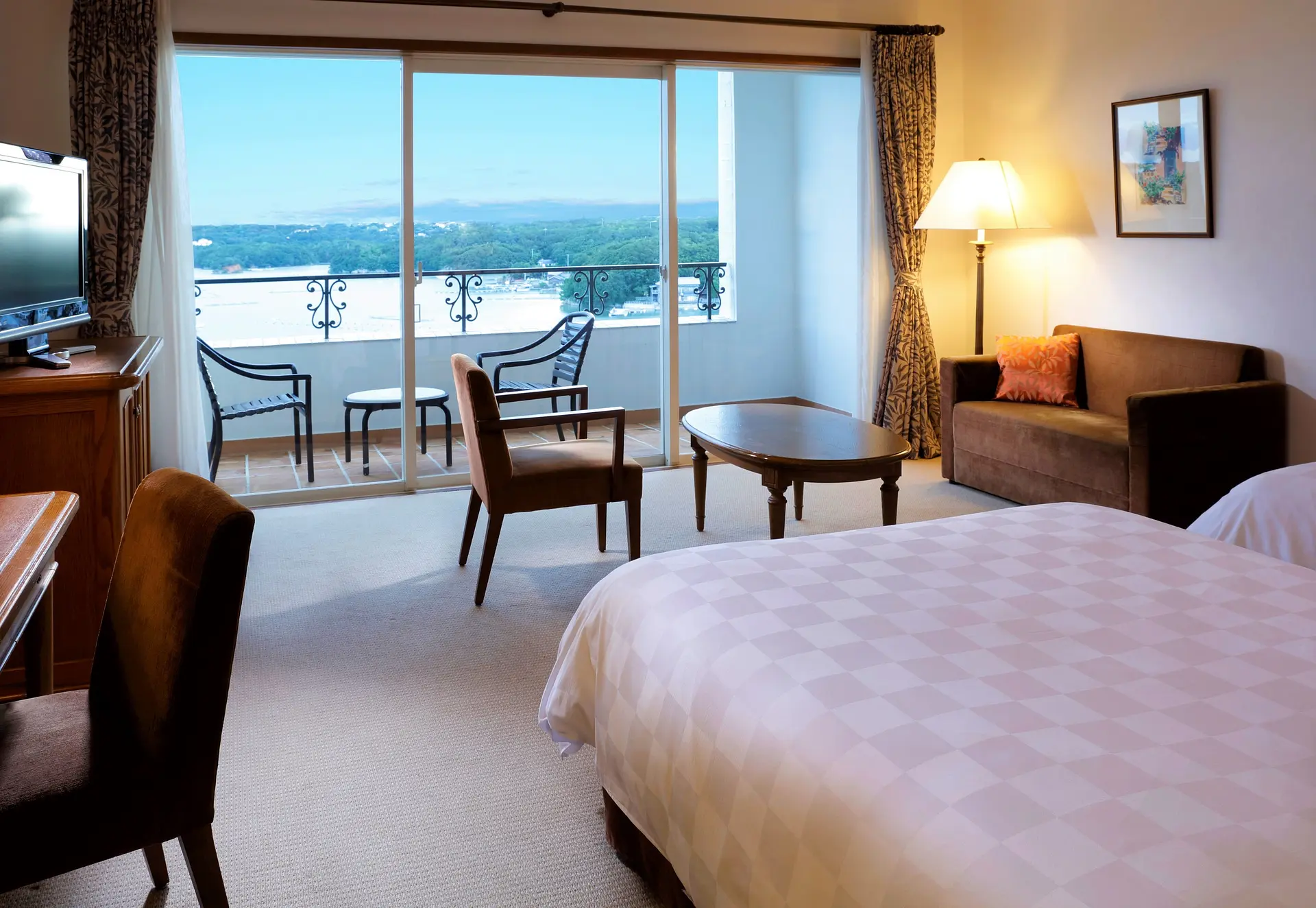 それを望む絶好のロケーションに位置する「都リゾート 志摩 ベイサイドテラス(旧 プライムリゾート賢島)」では、大自然のパノラマビューと、開放的なスパニッシュスタイルを取り入れた建築美が上質なくつろぎを演出します。ロビーを中心に、両翼を広げたかのような「建物の配置」もユニークで、写真に収めたくなるスポットがいっぱい。まさにフォトジェニックなリゾートホテルです!