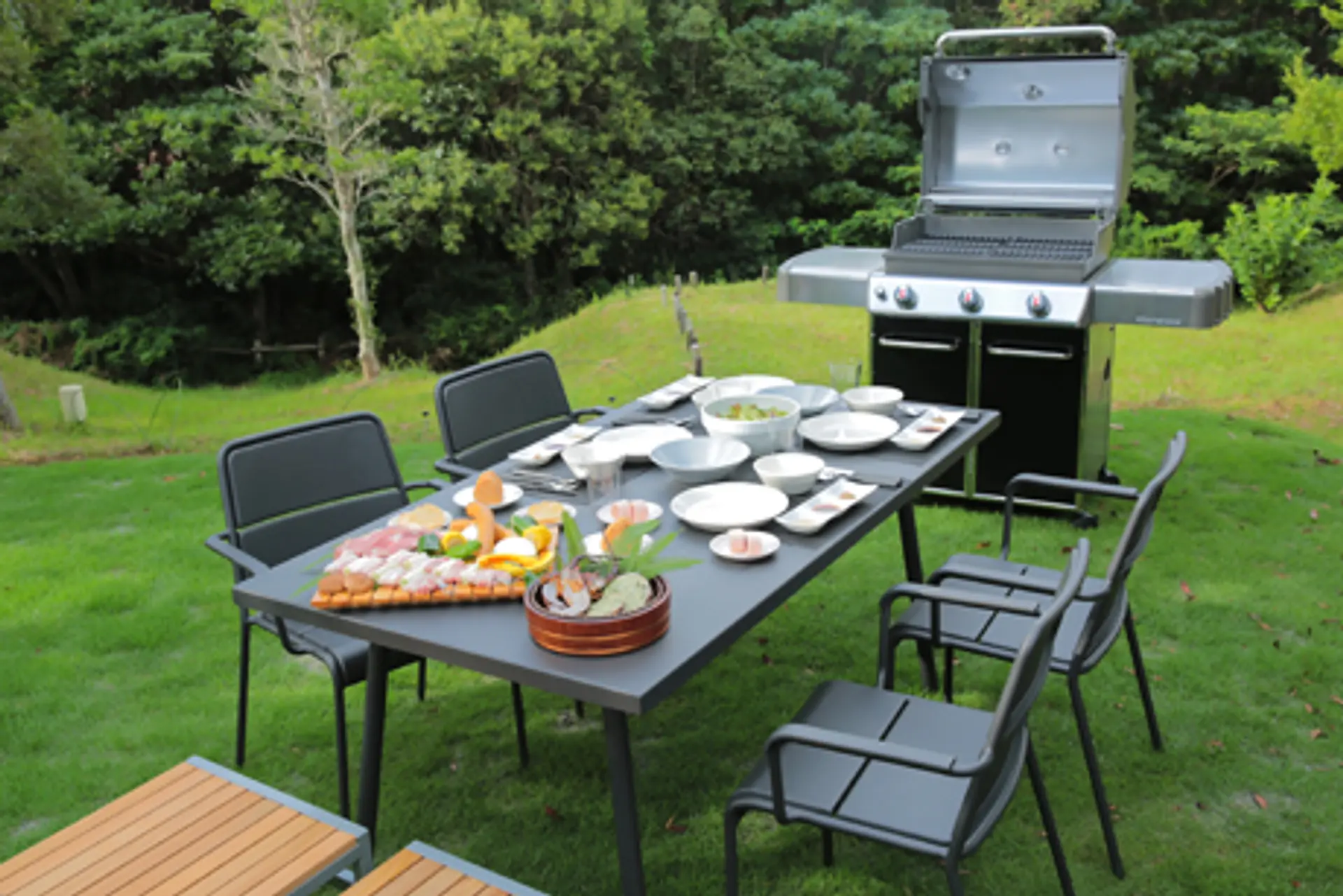 コテージのデッキでは、木々の木漏れ日を感じ、小鳥のさえずりを聞きながら、プライベート空間で仕事に集中できる。各コテージにはWiFiが完備されており、通信環境も安定。大容量ファイルの受領・アップロードや重要なオンライン会議などでも、安心して快適にリモートワークができる。