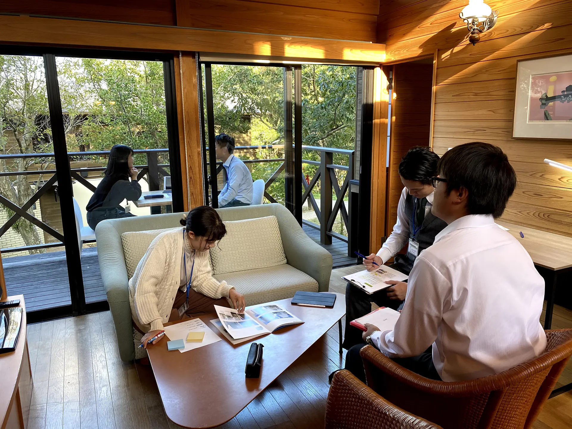 ・仕事に集中できる環境を備えた森のコテージ。更に、グループディスカッションや個人ワークなど様々なシーンで活用可能なコワーキングスペース完備。森のコテージの静かなプライベート空間と、コワーキングスペースを使い分け、仕事の効率アップ!
