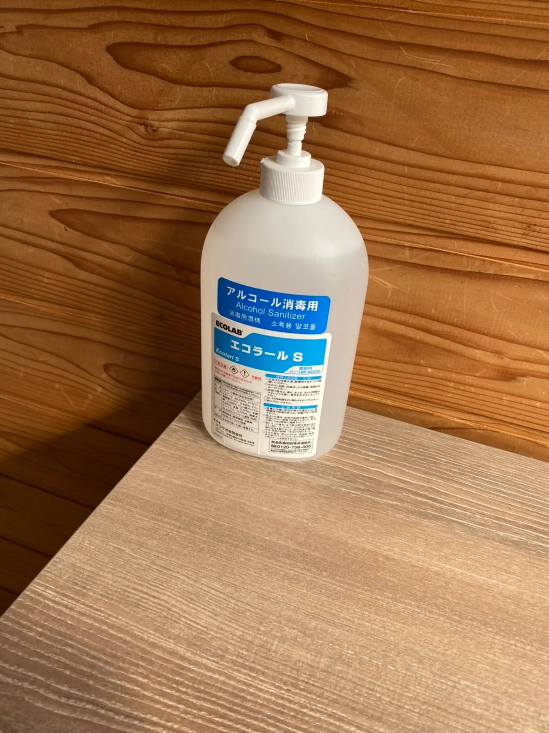 森のコテージには、消毒液は勿論、各部屋に空気清浄機が設置されており、換気に対する配慮も行き届いている。