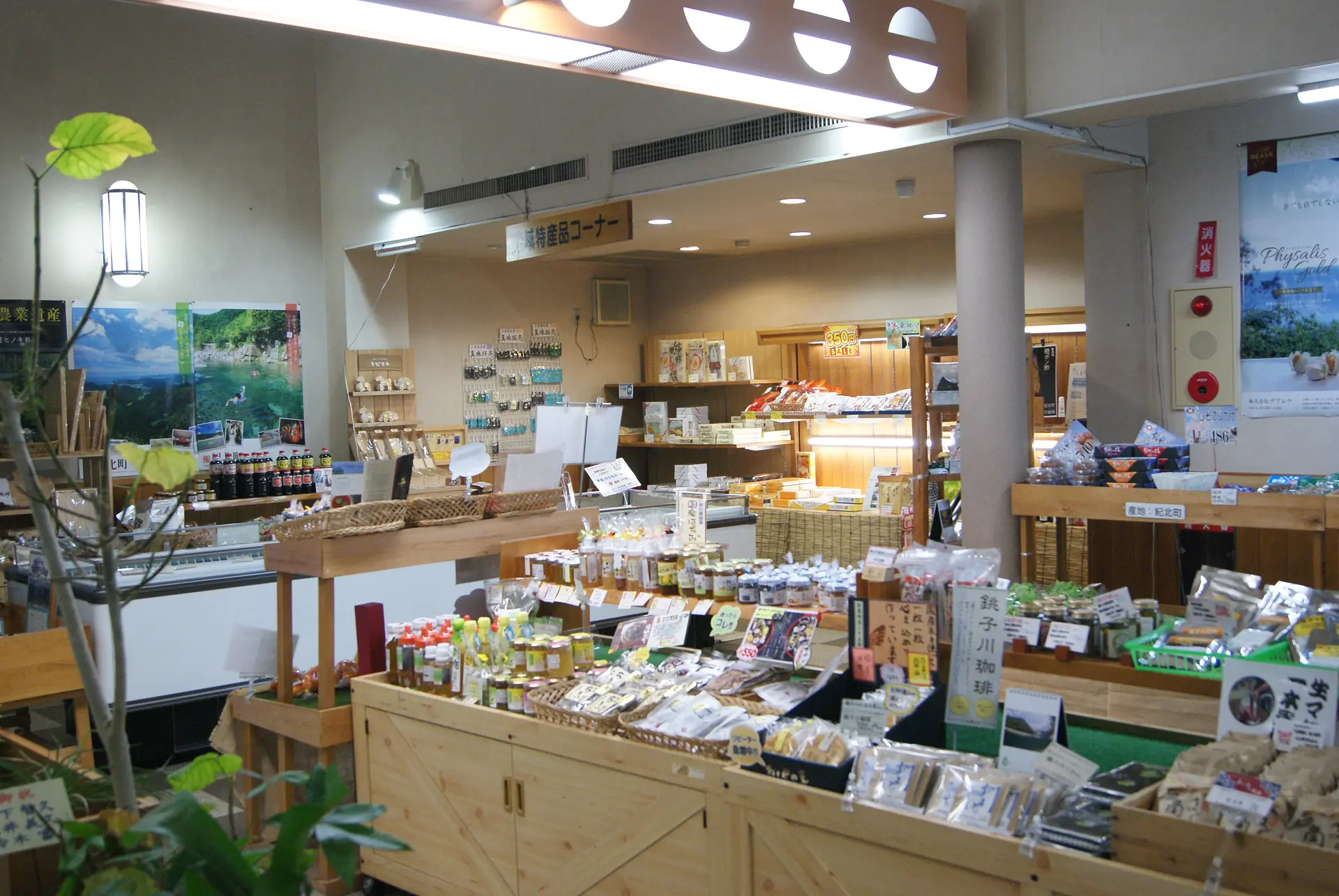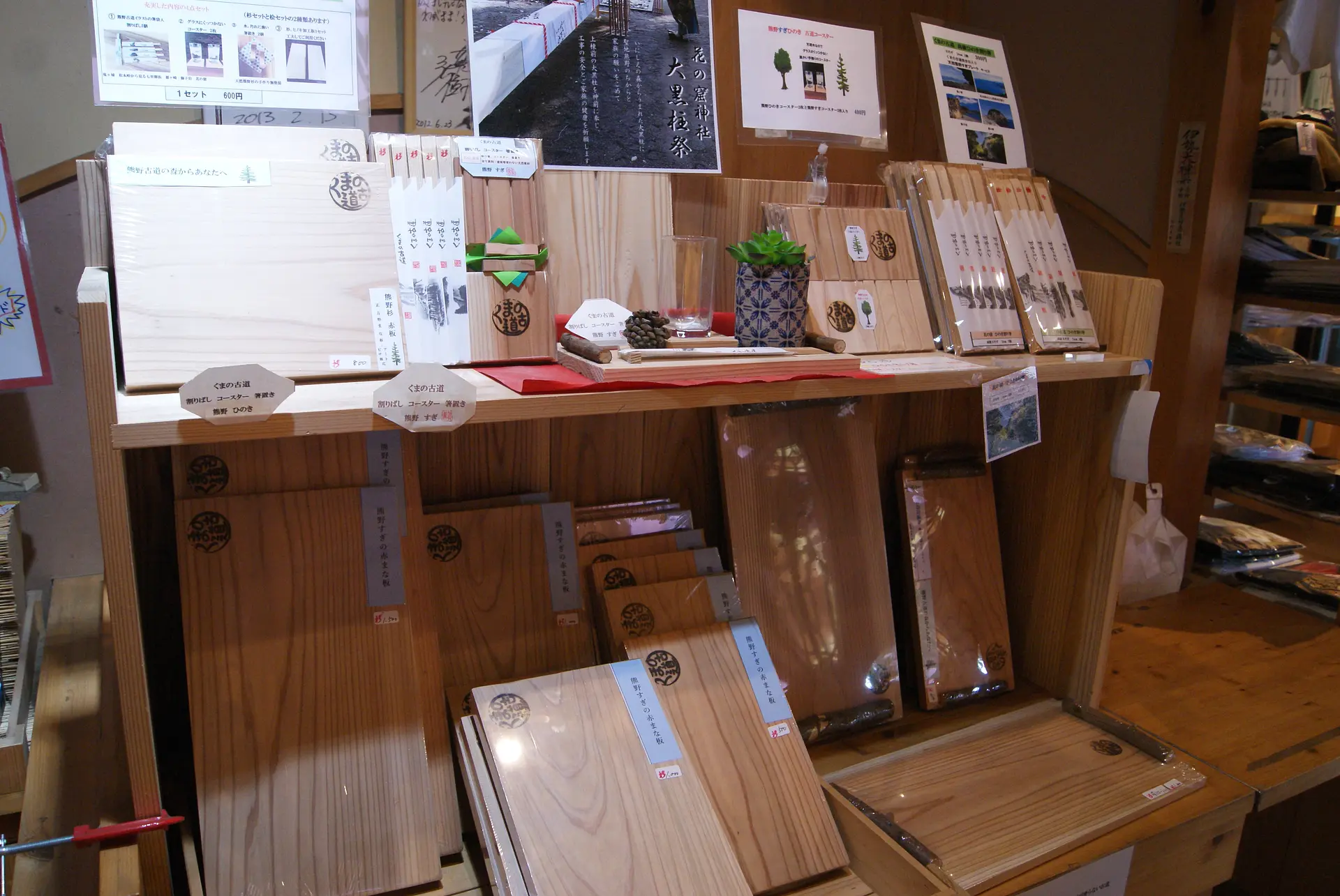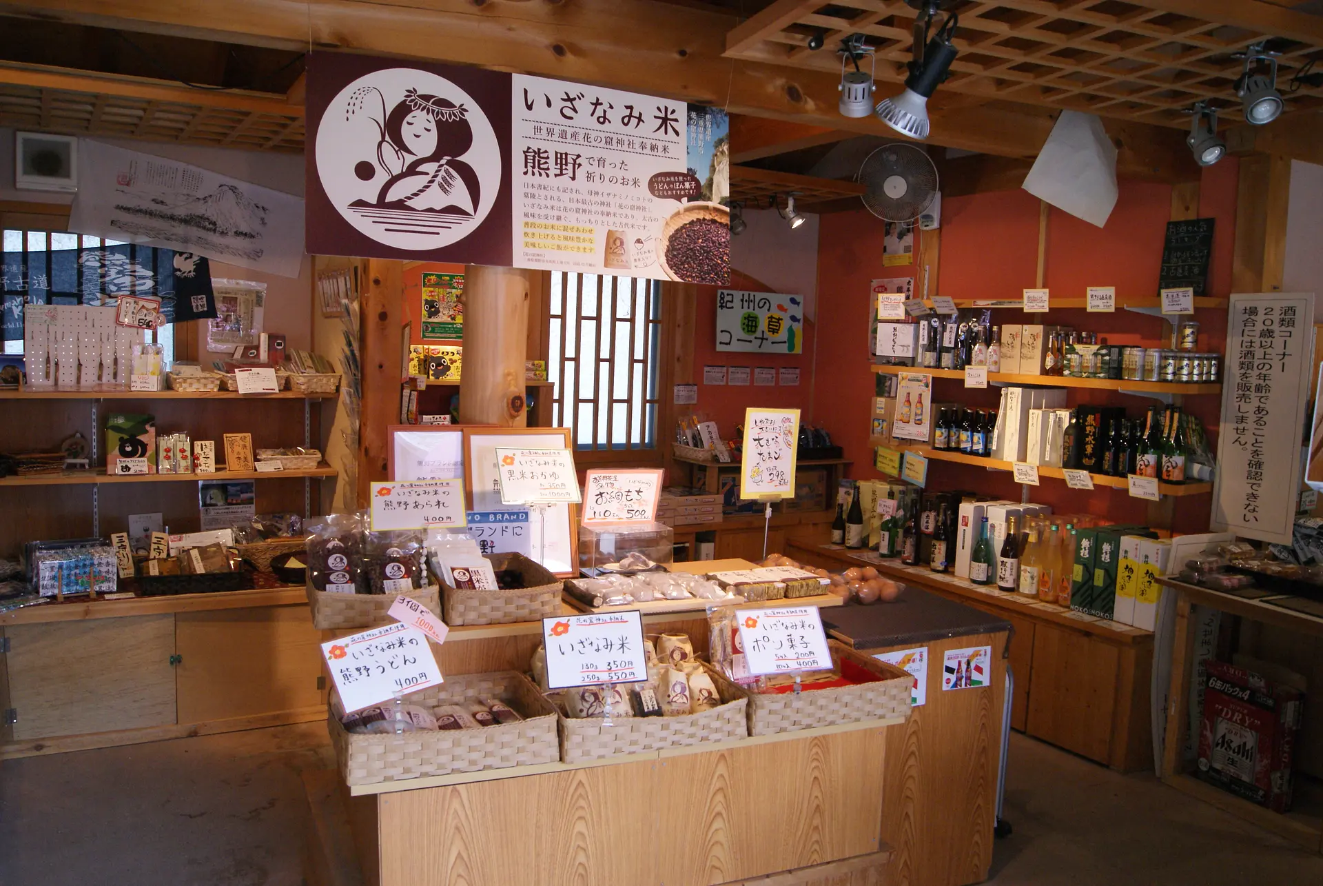 熊野の特産品をメインに豊富な品ぞろえの物販コーナー。