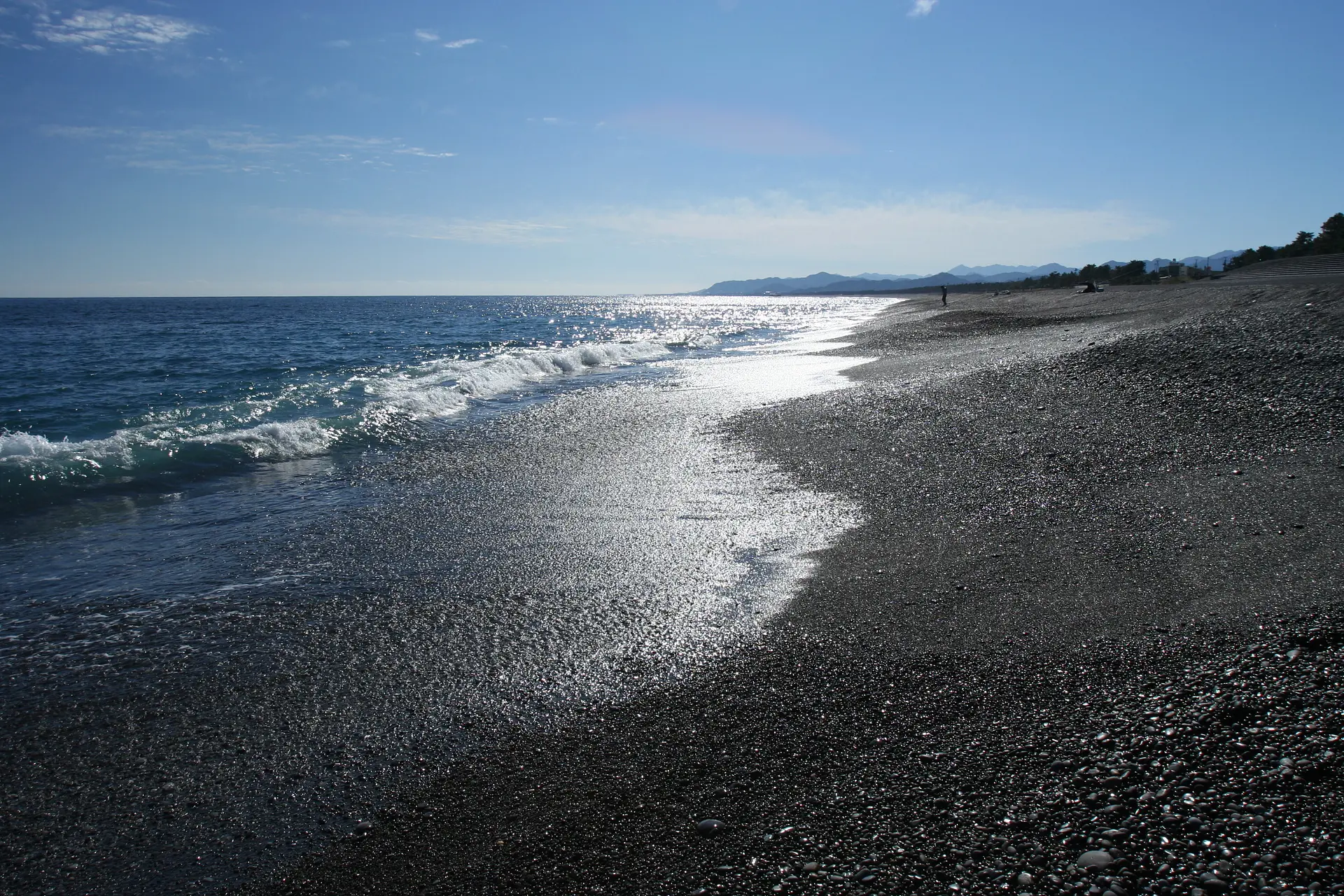 リアス海岸が標準と思われる熊野灘沿いの海岸線にあって、鬼ヶ城(熊野市)の南あたりから紀宝町まで、なだらかなラインが続きます。その距離、約22km。日本で一番長い砂礫海岸「七里御浜」は、「世界遺産(浜街道)」「日本の渚百選」「21世紀に残したい日本の自然百選」「日本の白砂青松百選」「日本の名松百選」など、あらゆる百選に選ばれるほど美しい海岸地域です。春から夏にかけて、アカウミガメが上陸する地としても知られています。
