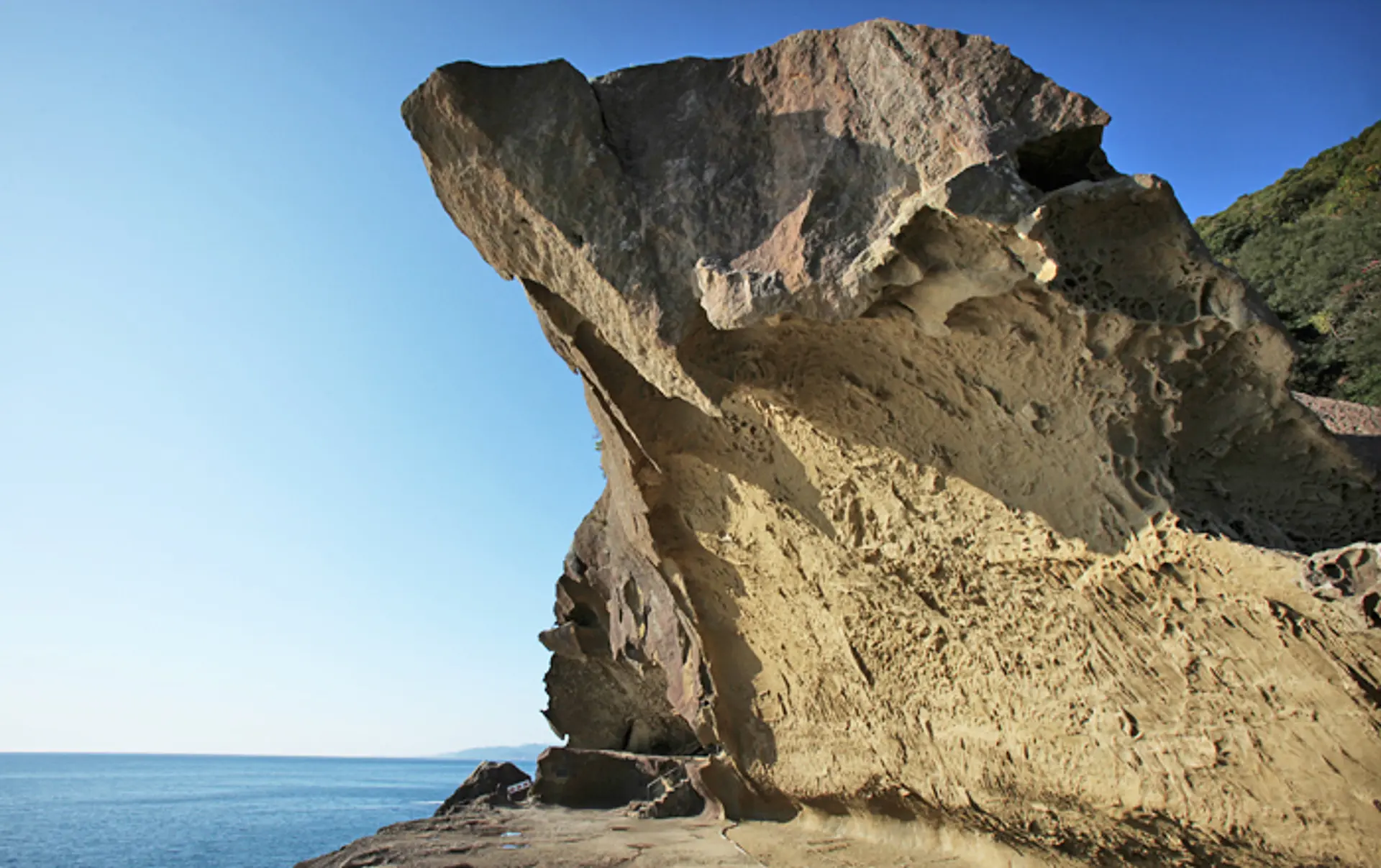 「道の駅 海山」から、国道42号をさらに50分ほど南下すると、進行方向の左側に現れるのが「鬼ヶ城」です。世界遺産であり、国の天然記念物で名勝に指定された、東紀州を代表する観光スポット。
