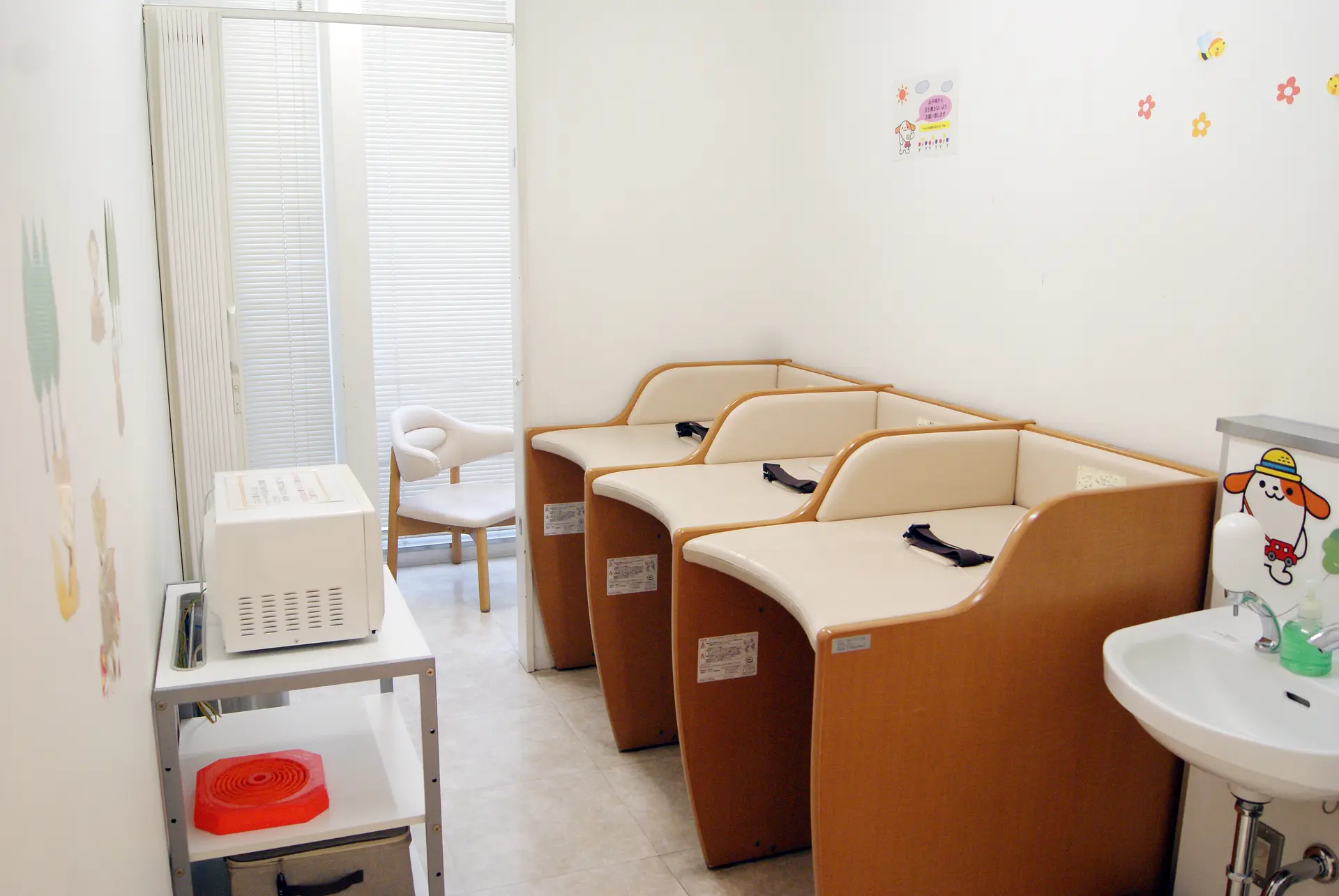 また、「EXPASA御在所 」は、いろんな世代にやさしい設備・施設が備わっています。パンフレットなど小さな文字を見やすくする老眼鏡やベビーカー2台、車椅子2台の無料貸し出しもあり! そのうえ、駐車場から館内まで、段差がほとんどありません。そして、清潔感あふれる「ベビールーム」も好評。奥には「授乳室」があります。ミルクを温める電子レンジも完備してるんですね。幅広い世代が楽しめるよう、さまざまな工夫やサービスが充実しています。