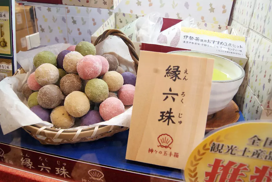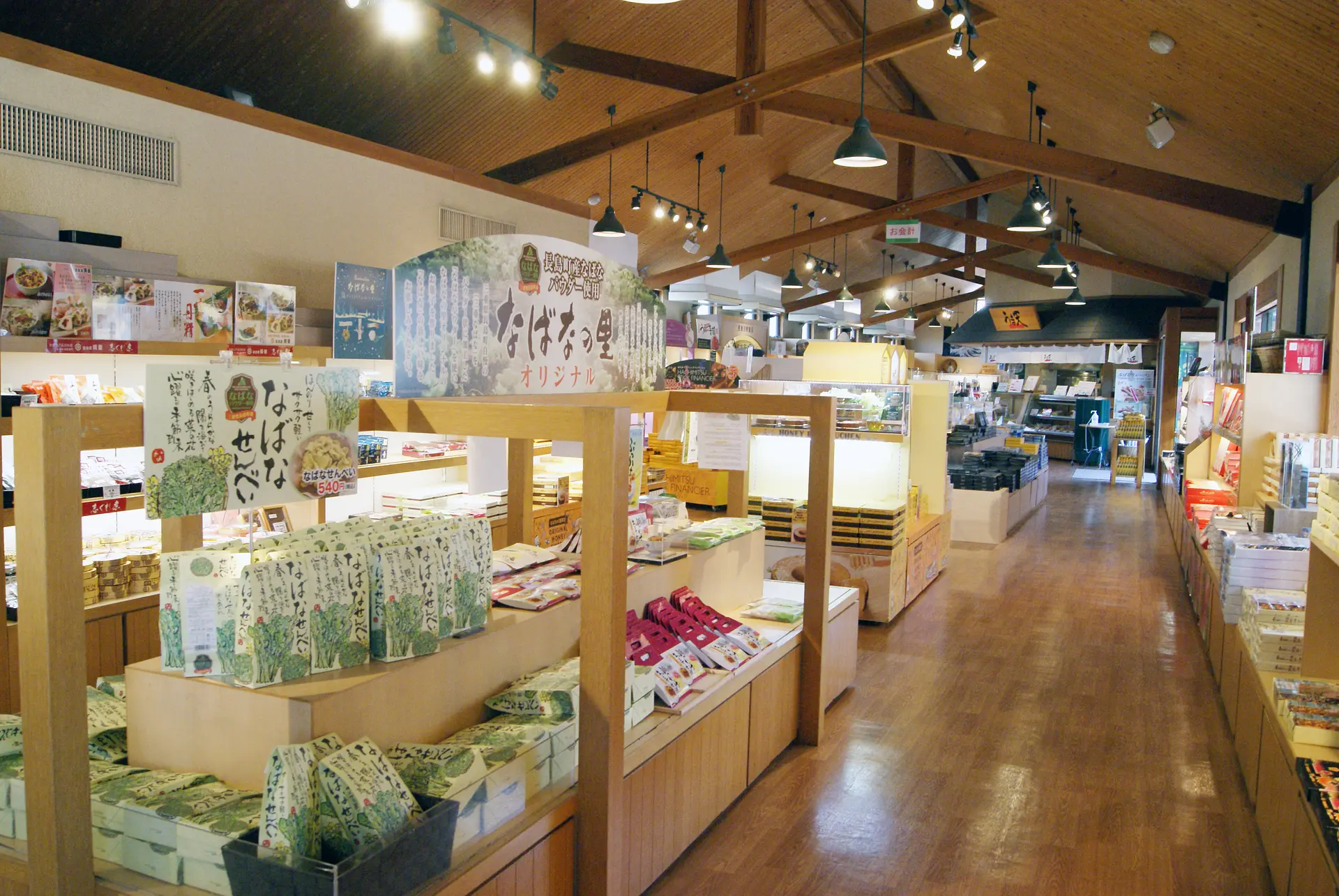 「なばなの里」の敷地内にある、ショッピングエリアも要注目!「村の市」には、オリジナルの商品や近隣地域の特産品がずらり。桑名市長島町産のなばなパウダーを使った「なばなせんべい」は人気商品!