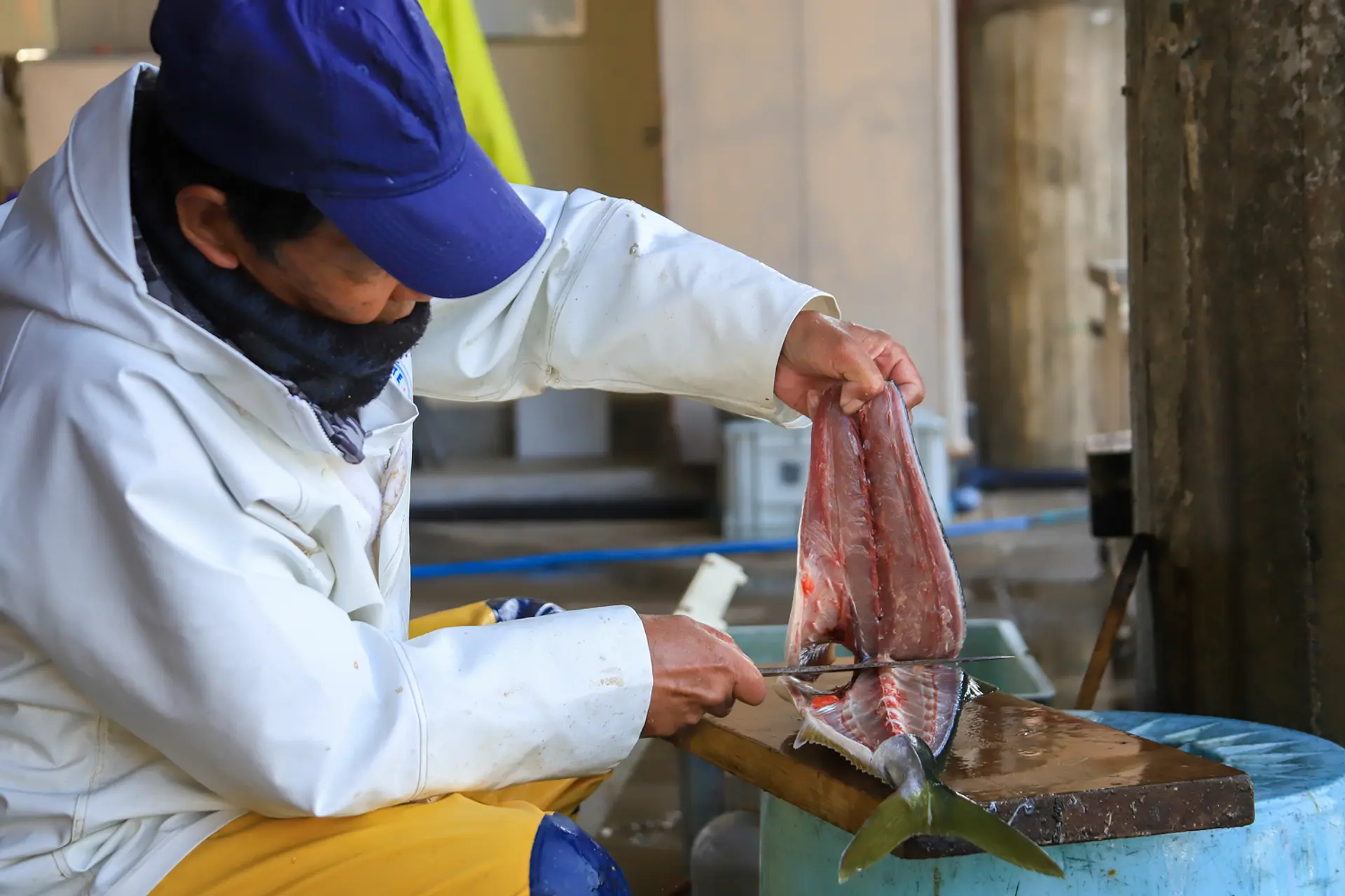 漁師さんの包丁さばきに見惚れていると、まるでワラサが柔らかなお豆腐のようにも見えてきます。