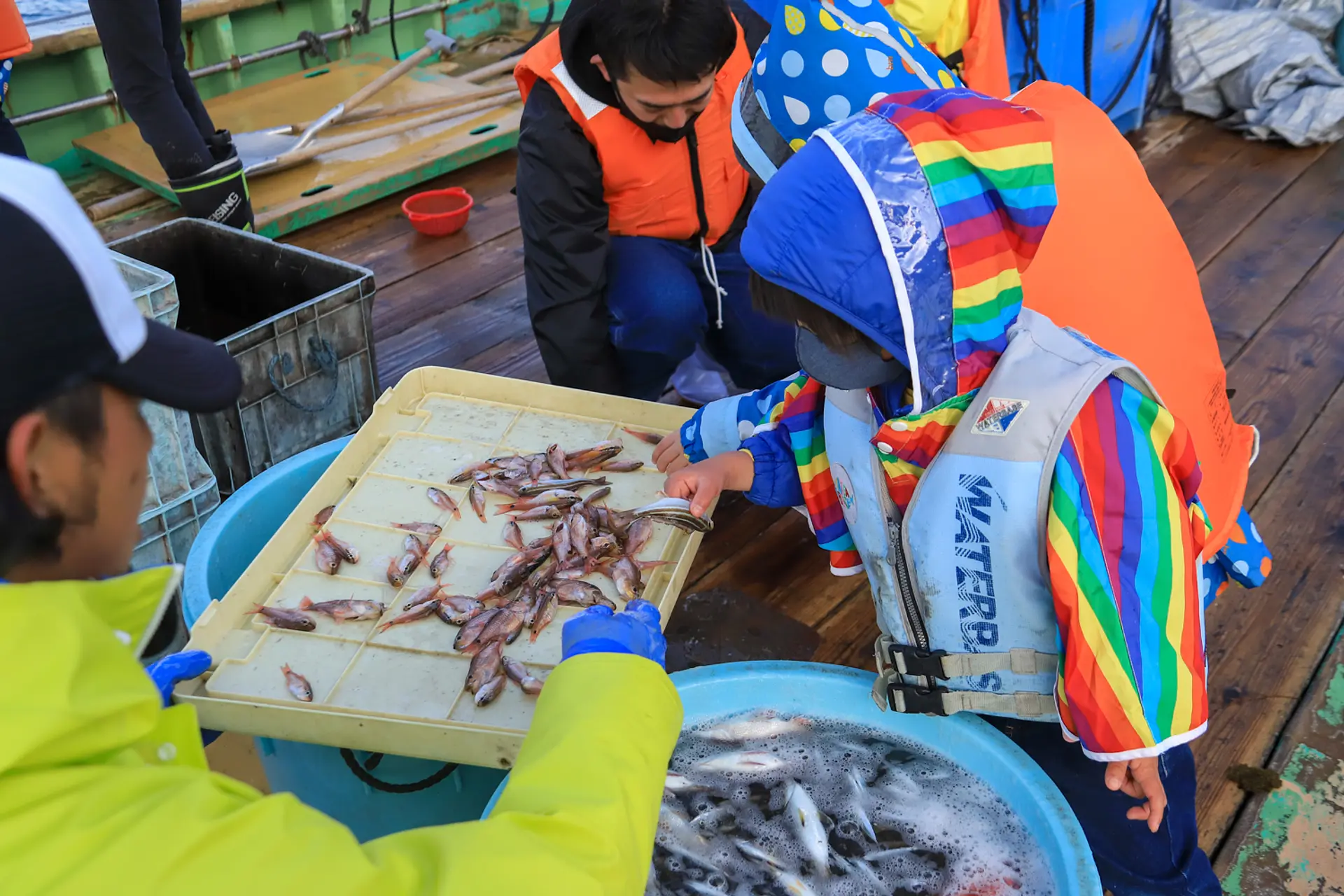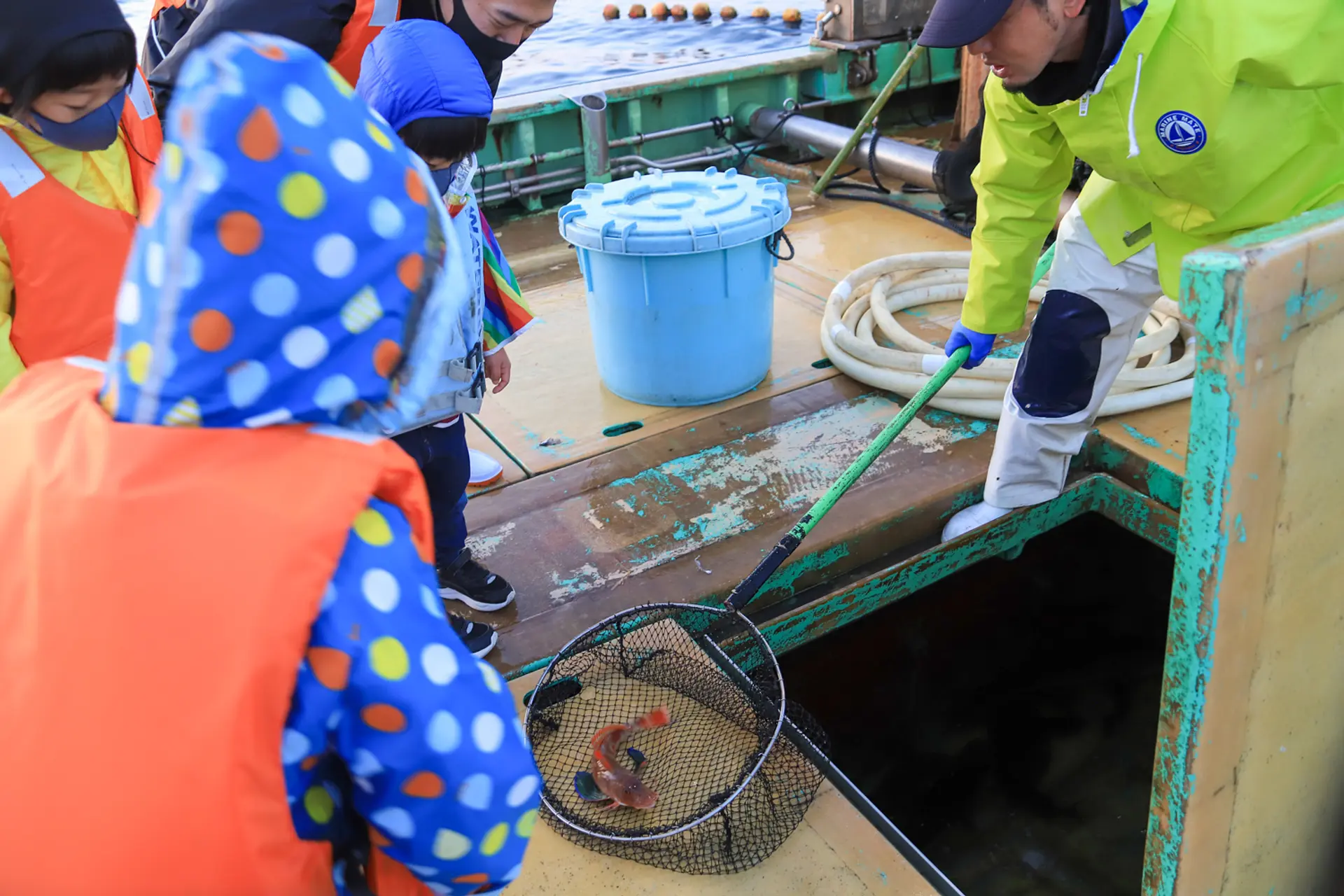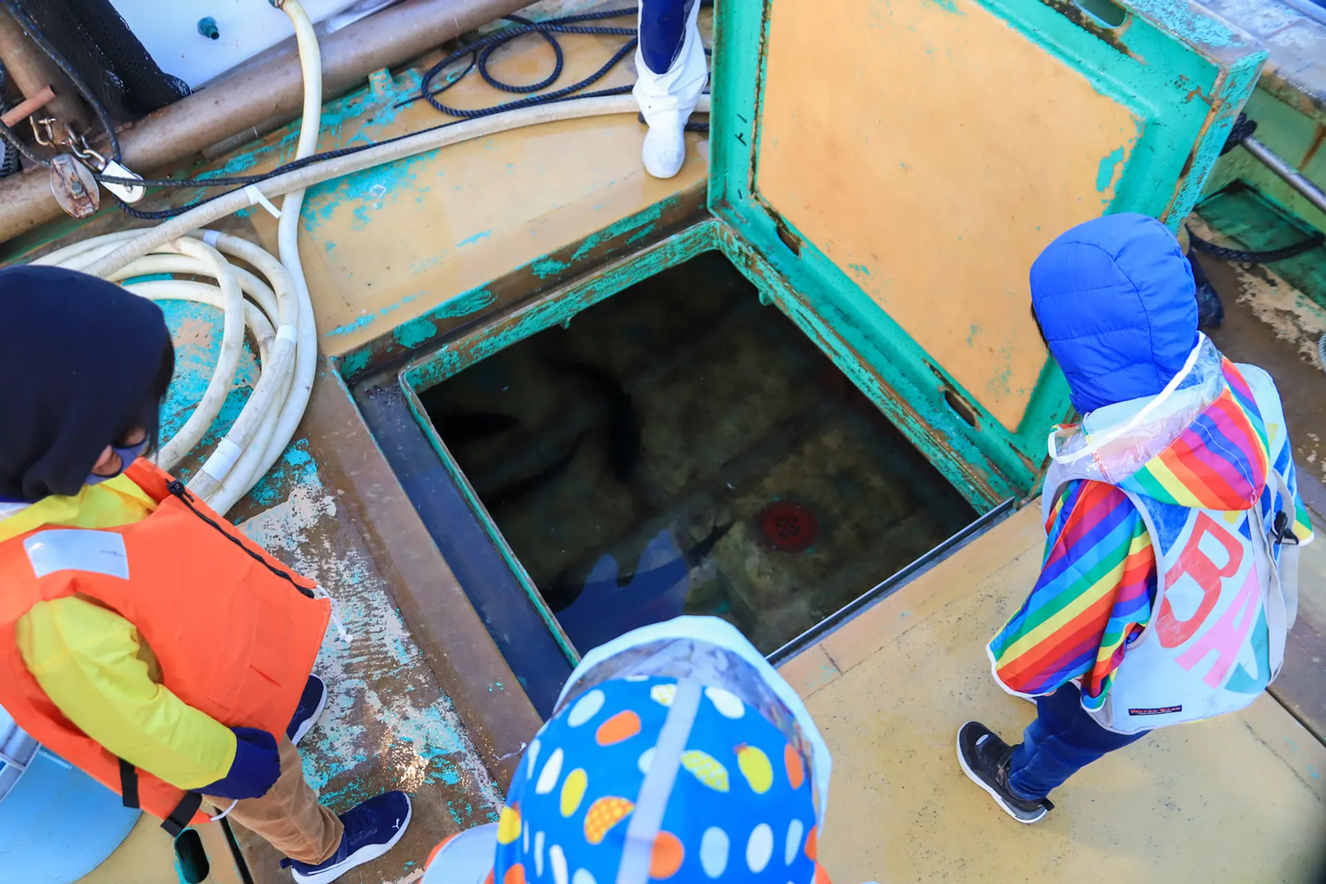 普段、なかなか間近で見ることのない元気でピチピチなお魚たちを見て、子どもたちの楽しそうな笑い声が船上に響きました。