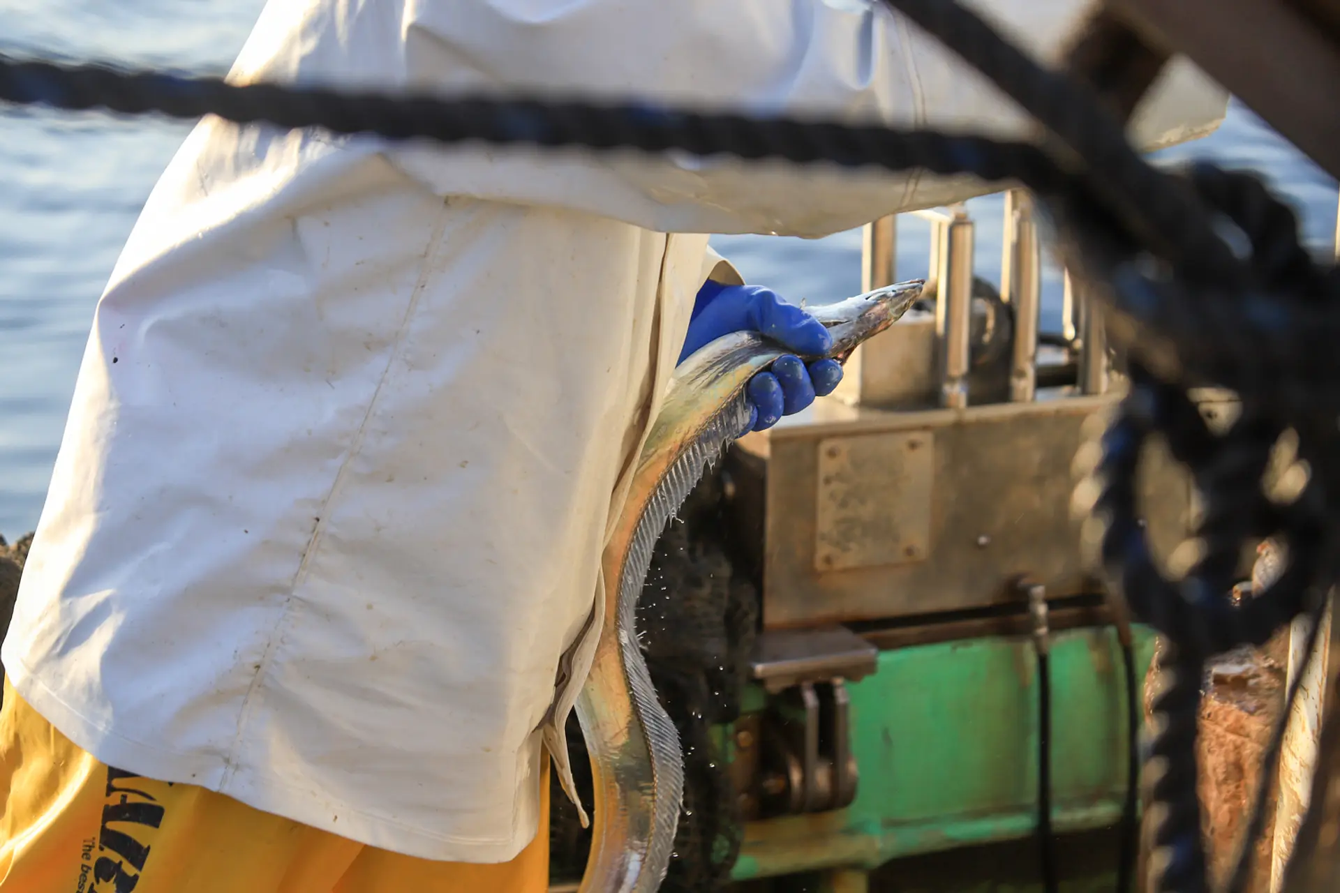 タモ網でお魚をすくい上げ、魚種やサイズを見極めながら自分の持ち場で漁師さんたちはテキパキと働く姿に見とれてしまいます。