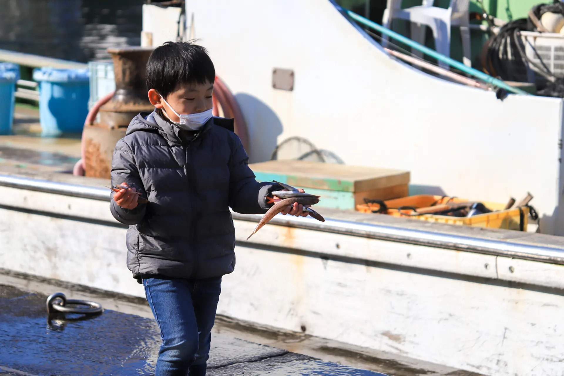 そんな慌ただしい漁師さんの働く姿を子どもたちは眺めながら、「お父さん、あの船に乗るの?」と不安げな表情。それでも、少しワクワクしている気持ちも伝わってきました。