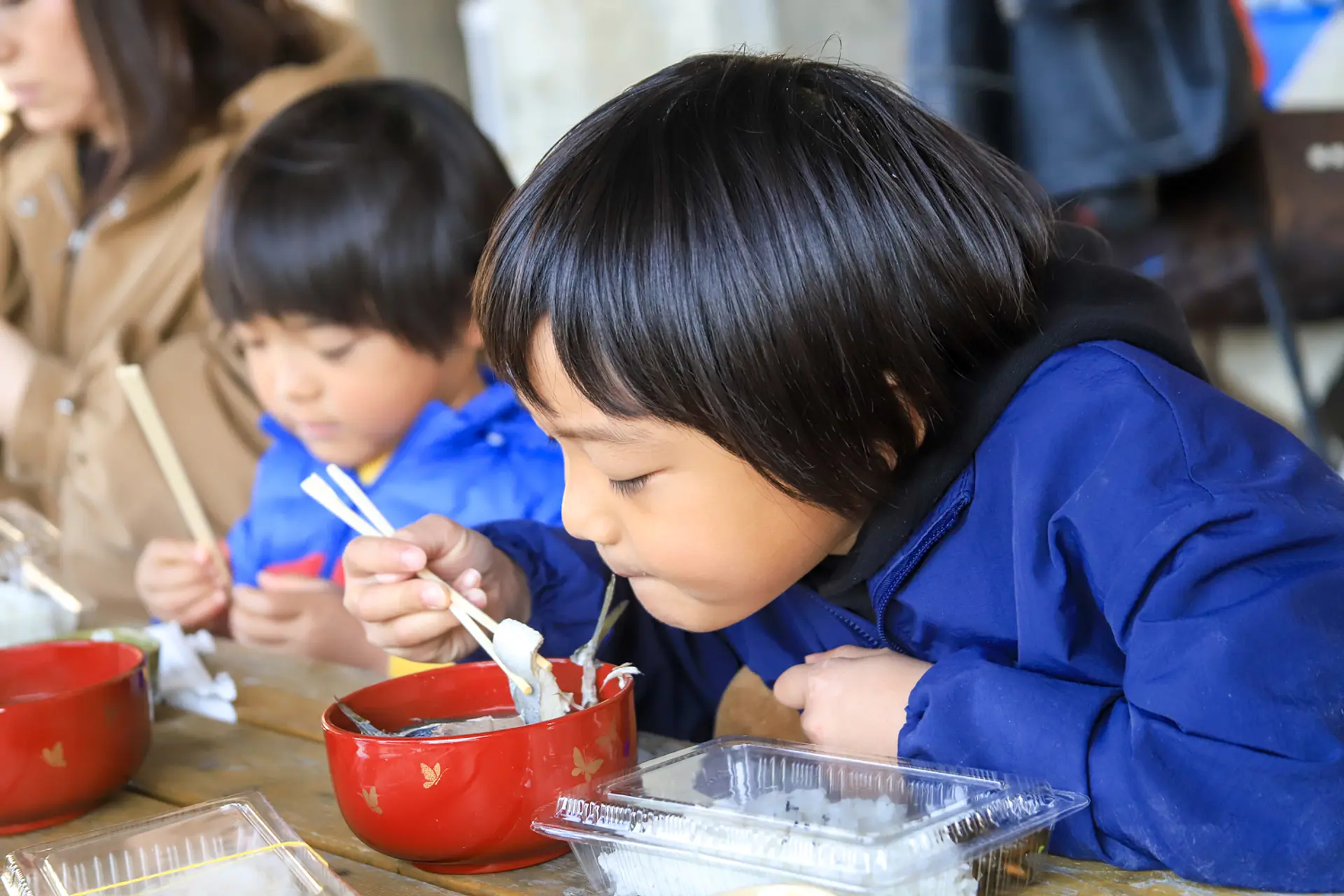 お腹を空かせた子どもたちは、パクパクと美味しそうにお魚を食べます。