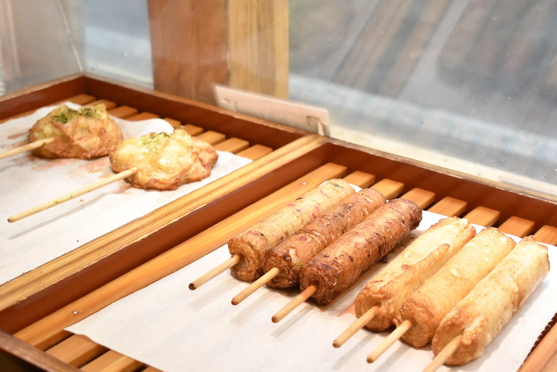 「チーズ棒」や「えびマヨ天」、「たこ天」(各350円)など種類豊富に揃っています。