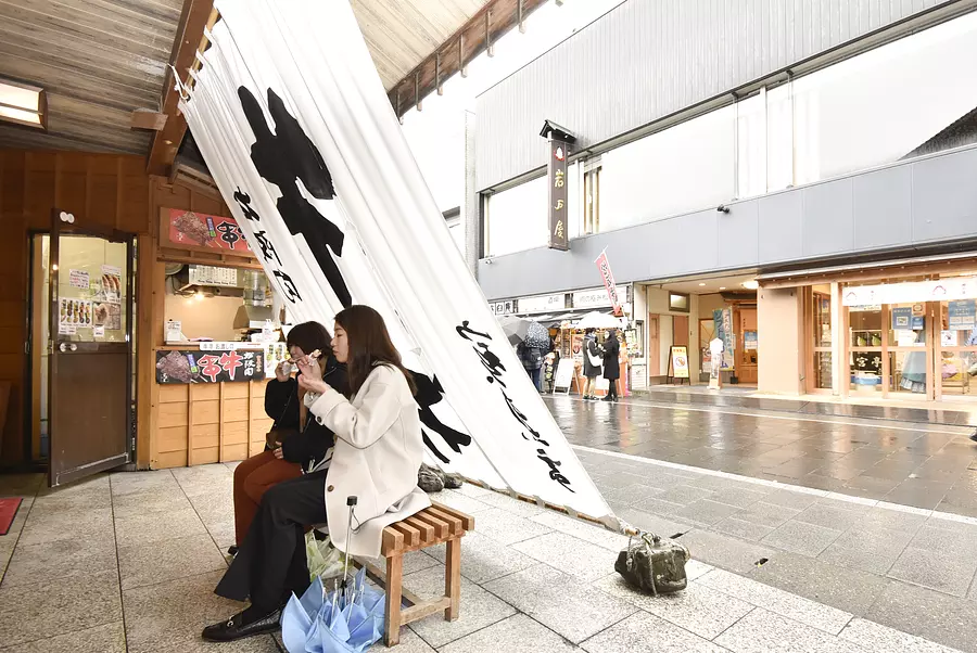 入り口の一角にある大きな「松阪肉 牛丼」と書かれた暖簾も、通りを行き交う人の目を惹きつけてやみません。それにしても、松阪牛を使った牛丼だなんて、なんとも贅沢!
