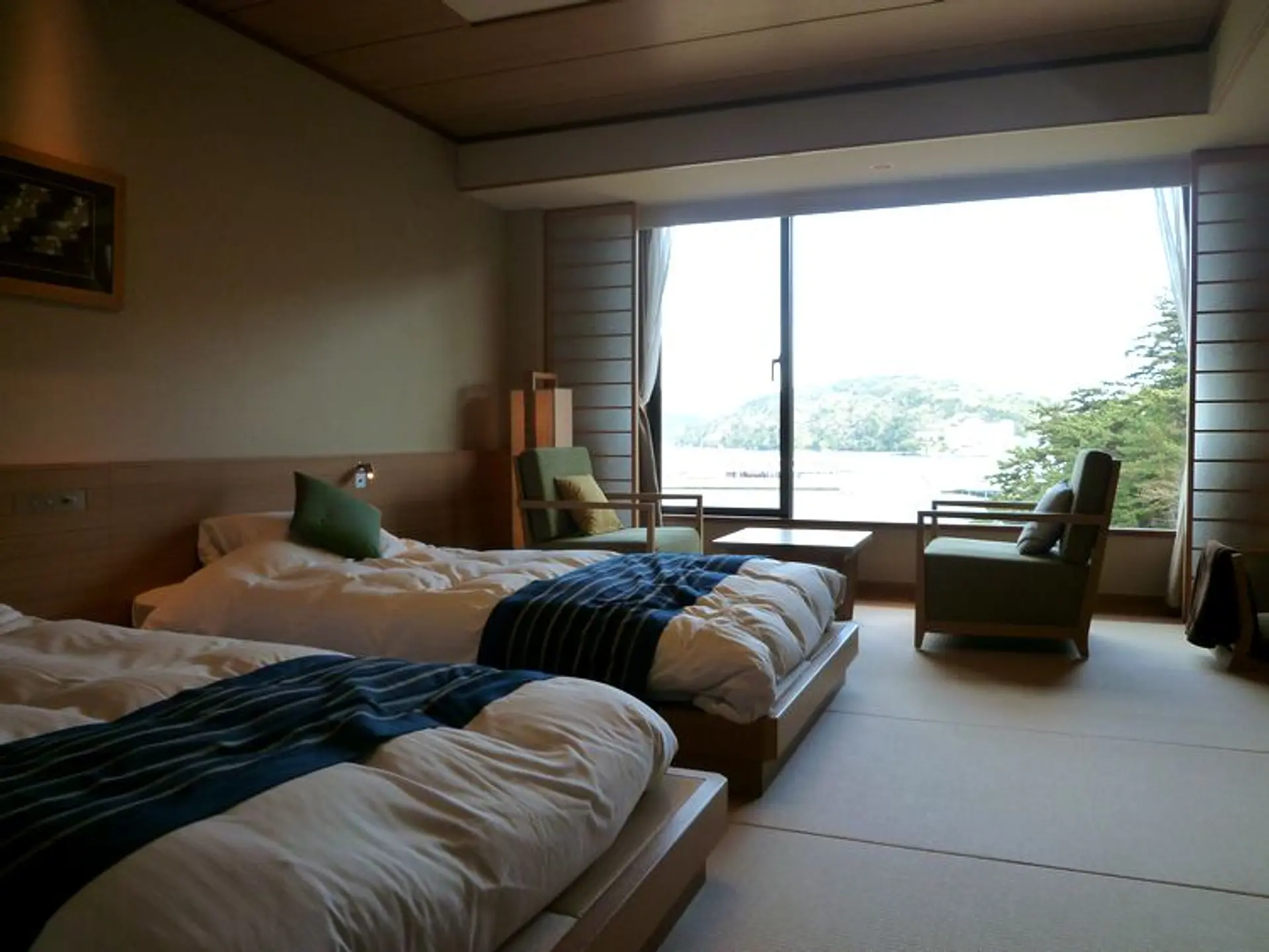 鳥羽市2012年4月1日リニューアル。和の落ち着きに洋の快適さを取り入れた、新感覚の客室「和モダンツイン」や、地元の食材を一番美味しい旬に堪能する「プライベートダイニング」、更にはミキモト コスメティックスとの提携により実現した、日本初の「パールオーロラ風呂」が誕生。