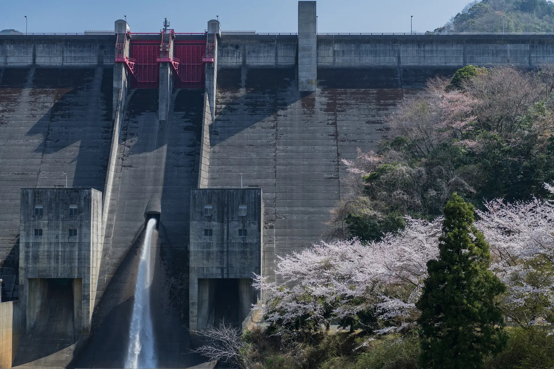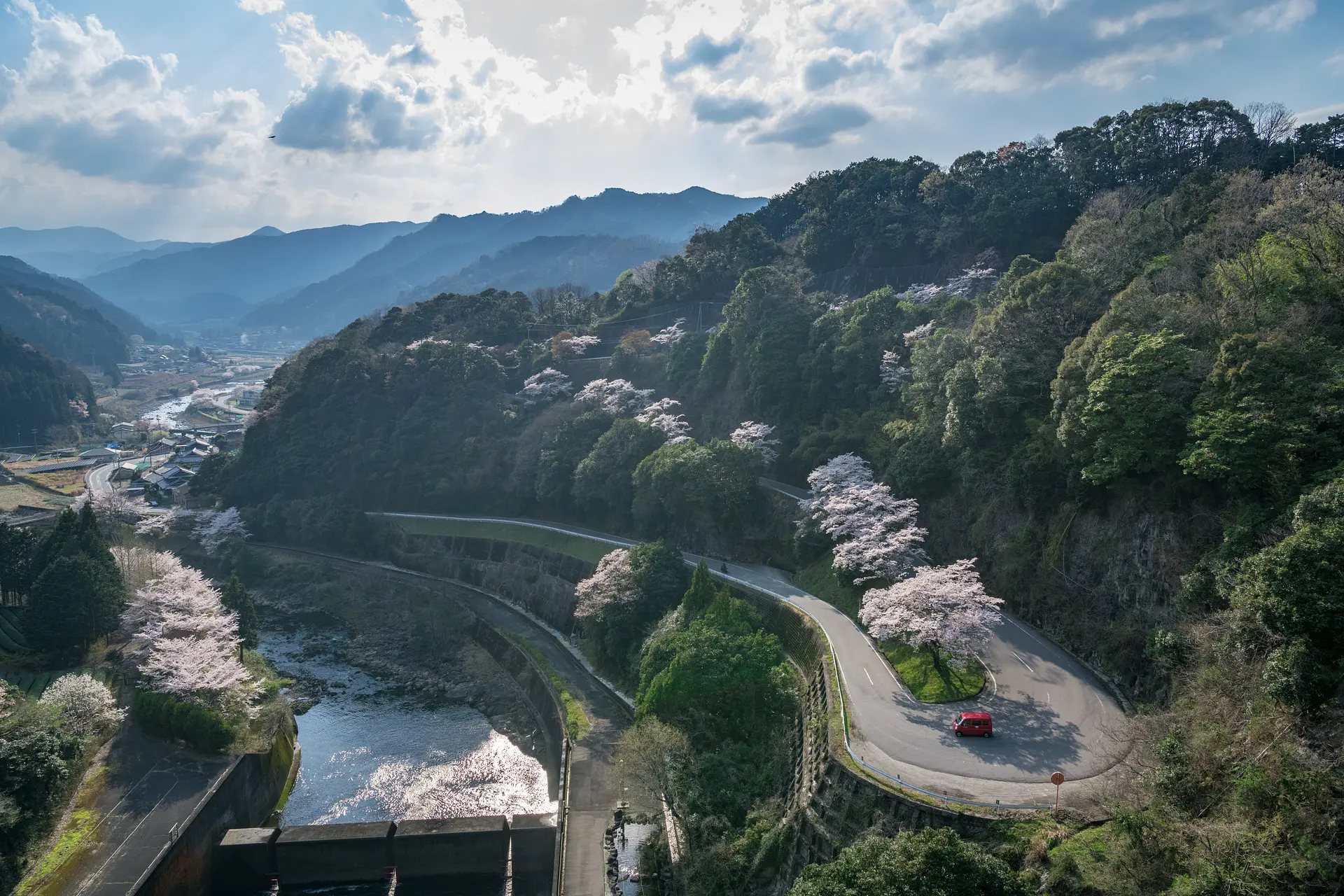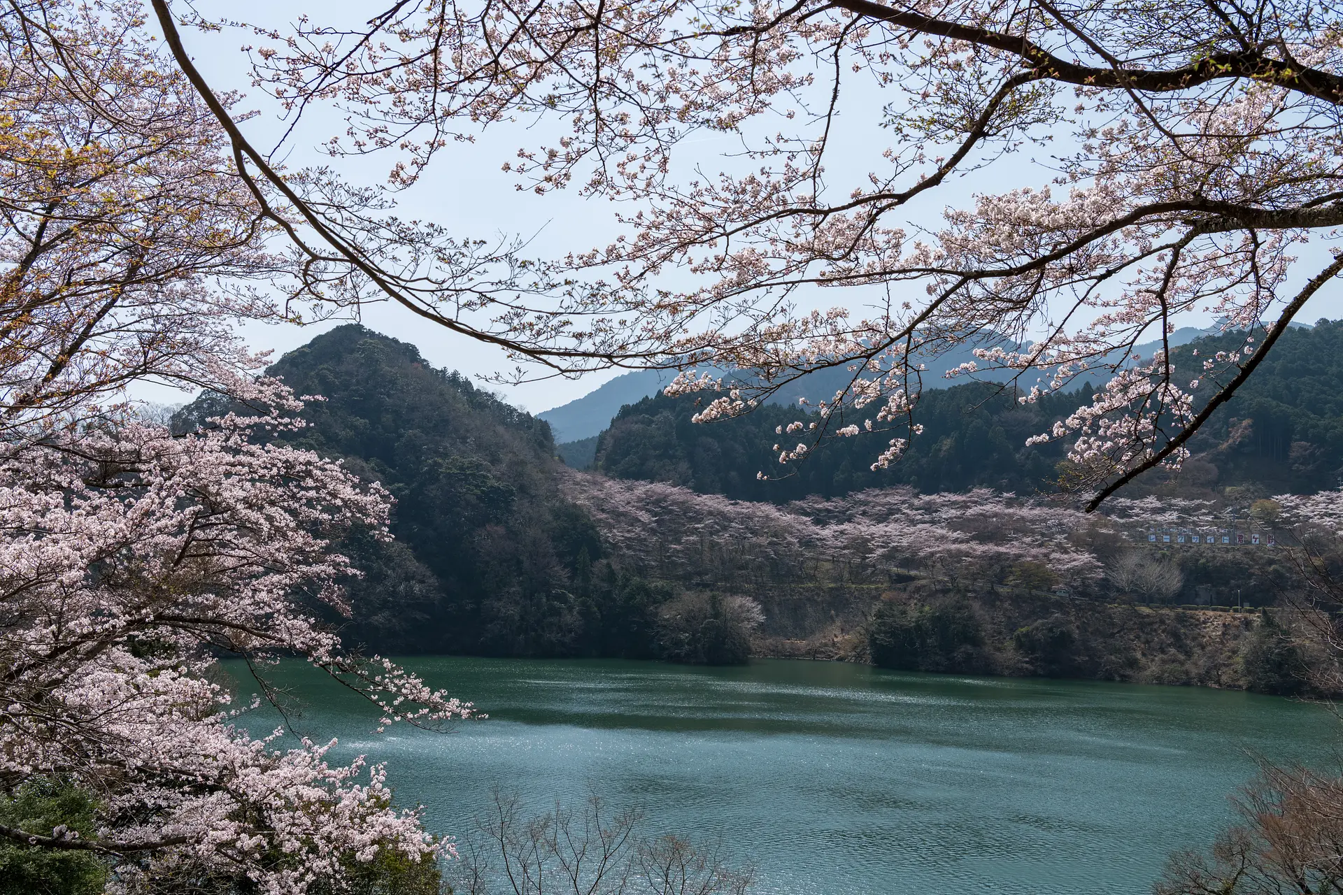 ダムから見下ろすと、そこにも絶景が!遠くには竹原の薄墨桜も小さく見えてます。