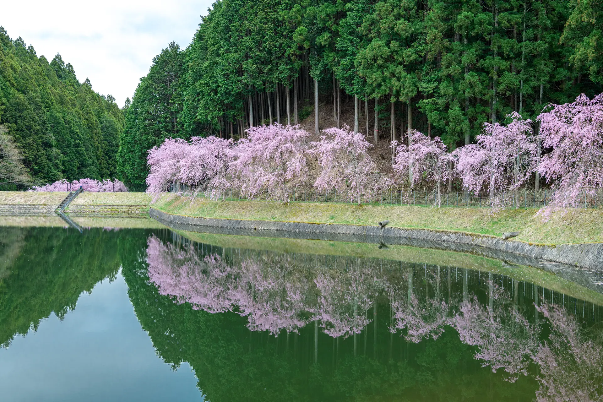 奥側には枝垂れ桜の並木が有ります。ここは水面が穏やかな時が多いようで、リフレクション写真が比較的撮り易いかと思います。
