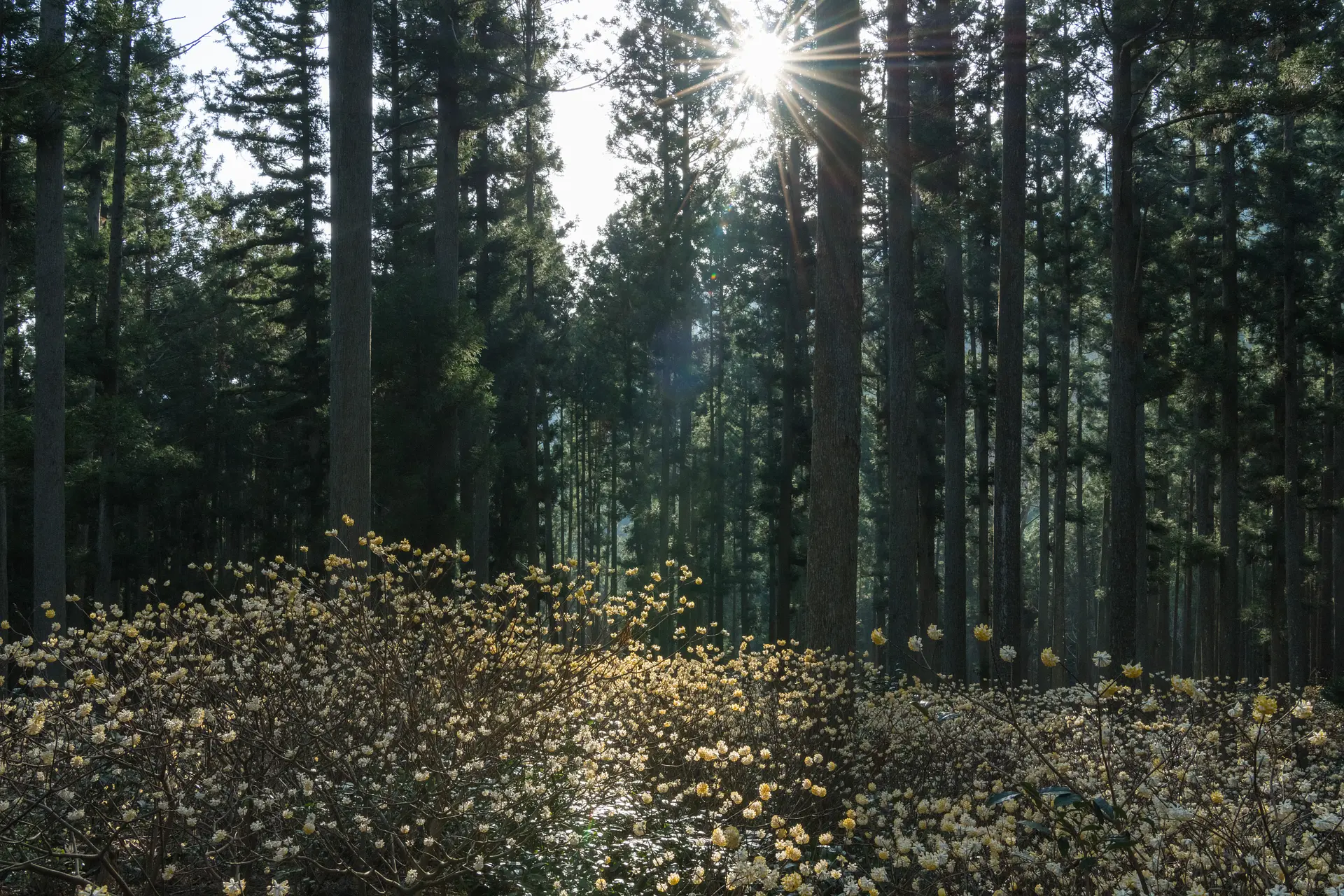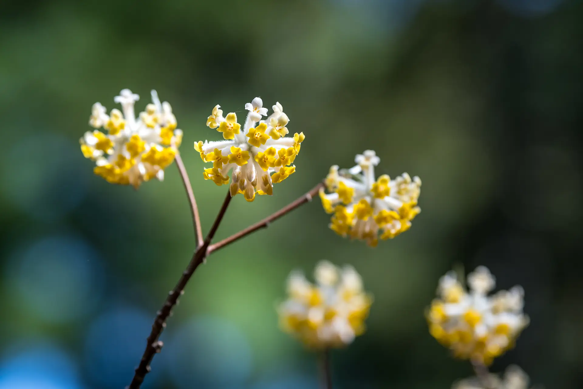 反対に後ボケを入れると、背景がスッキリして被写体が強調される写真になります。枝先が三つの叉(マタ)になるからミツマタなんですって!和紙や紙幣の原料にもなるそうです。