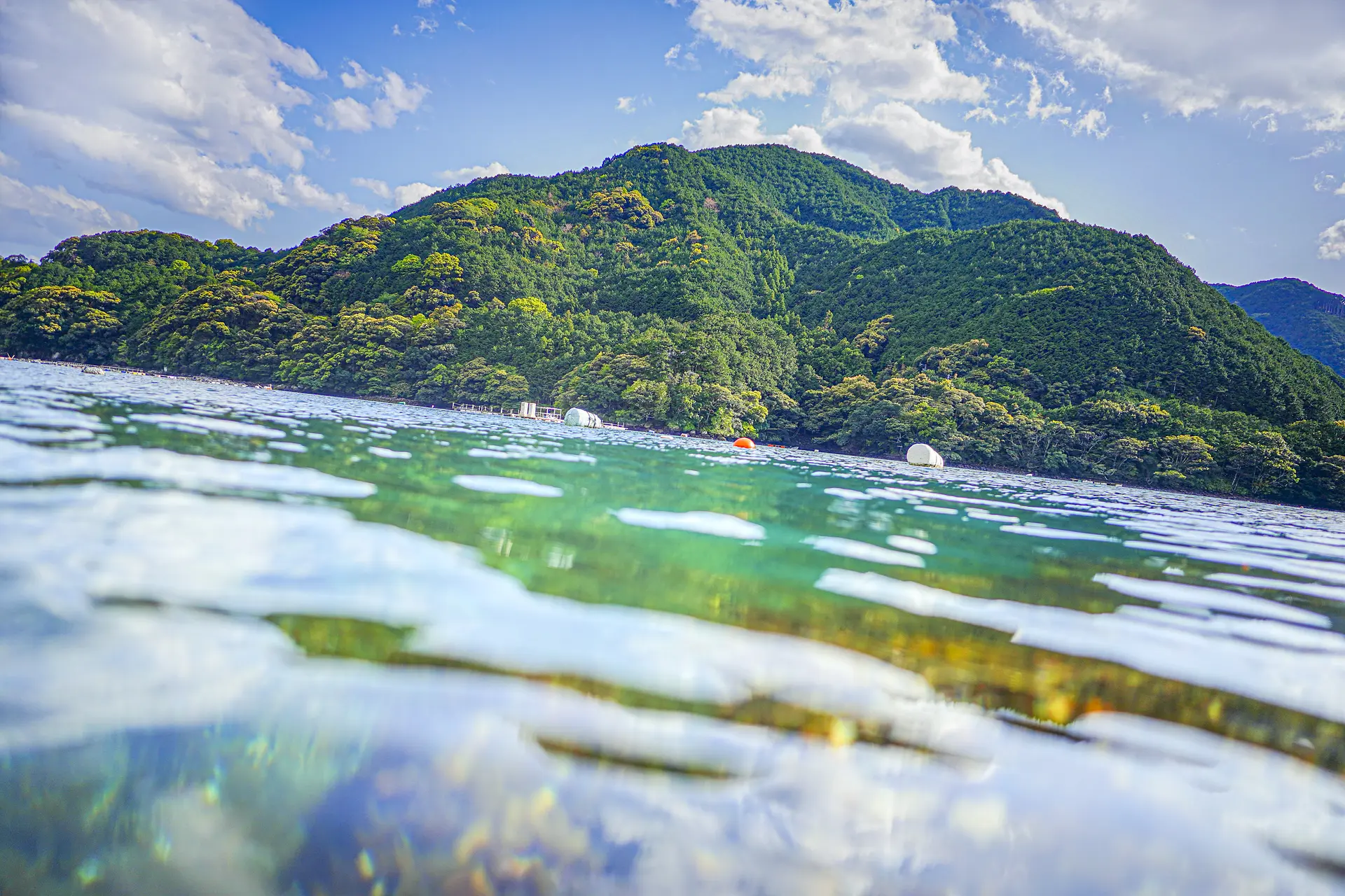 九鬼漁港の入口周辺で撮影。ここは、船が停泊していないことが多く、透き通った海を大きく写すことが出来ます。