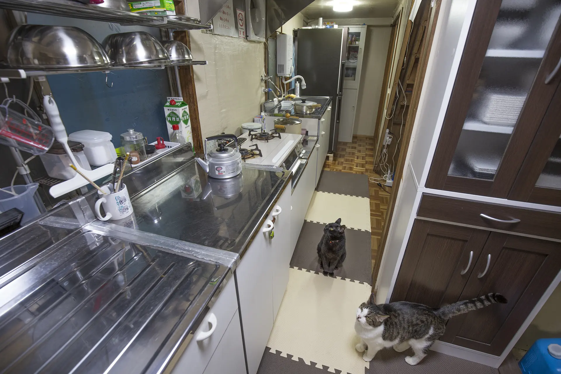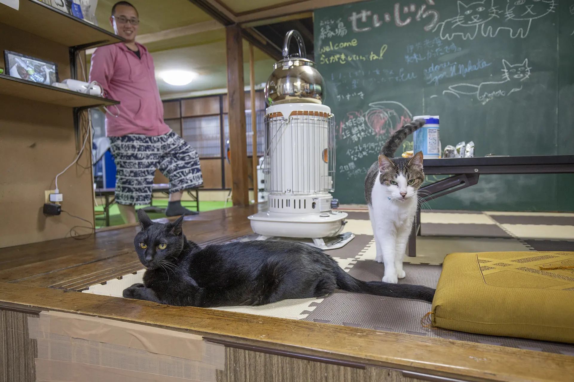 中に入ってすぐ、2匹のにゃんこにお出迎え頂きました。黒い猫がジジ、キジトラの猫がキキ。名前の由来は某ジブリ作品からきているようです。
