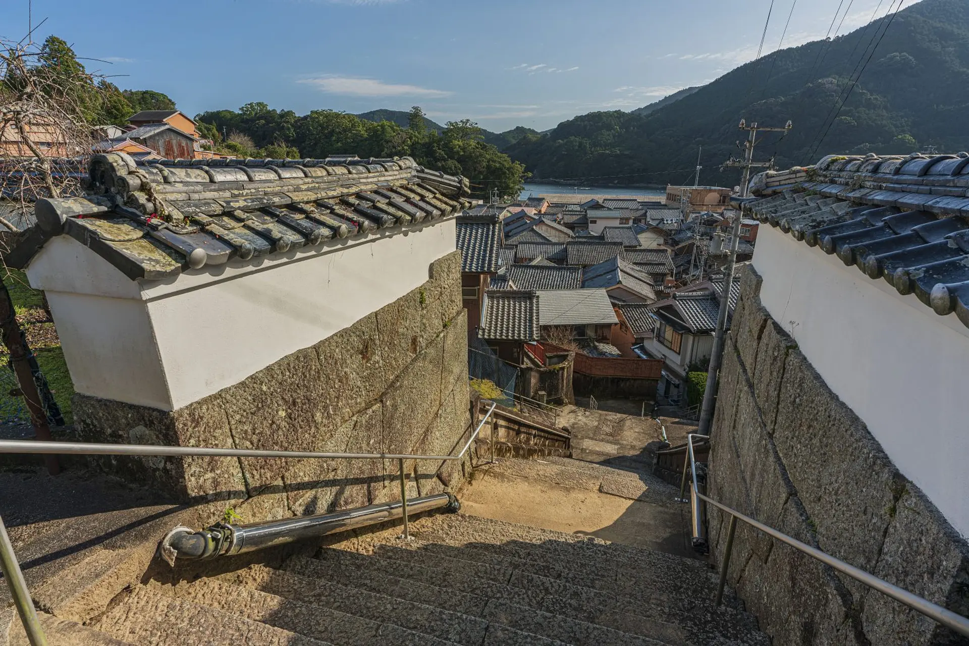 海×瓦屋根の町並み。まるで広島の尾道を想像させるような風情です。