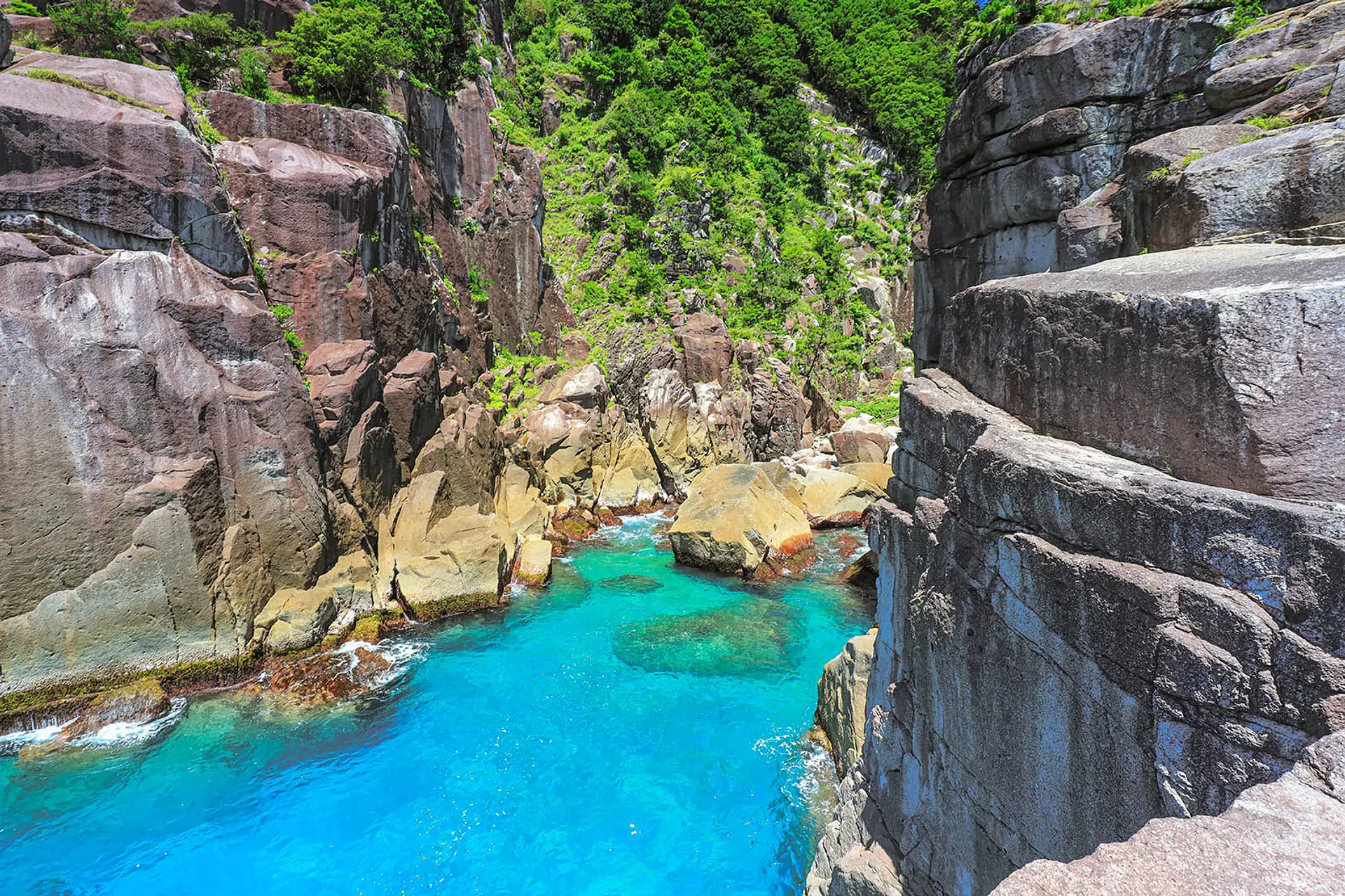 オハイは、断崖絶壁の秘境。九鬼町の山奥にあり、エメラルドブルーに輝く海を眺めることが出来ます。