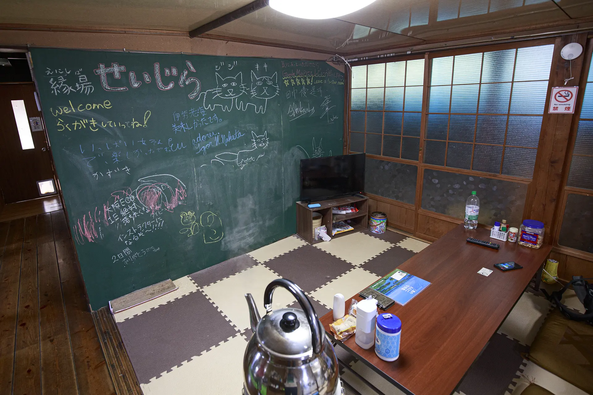 Twitterで以前から交流があった縁場せいじらのオーナーさん@nonhoi_buchoから取材許可を頂いて、建物内を撮影しました。ノスタルジーあふれる素敵なゲストハウスです。