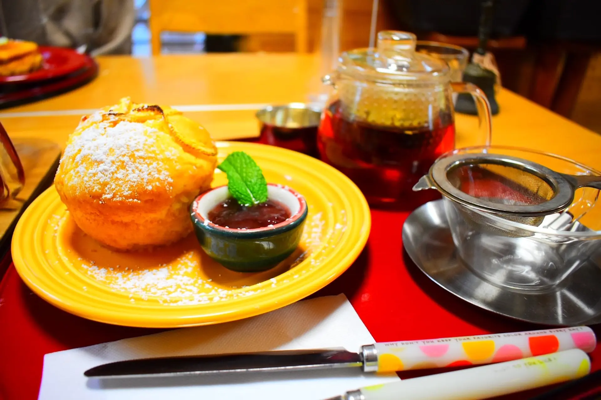 ハーブティー以外にもサンドウィッチ、パスタ、オムライスなどのフードメニューから、手作りマフィン、ケーキなどのスイーツも有り、品揃えが豊富です!