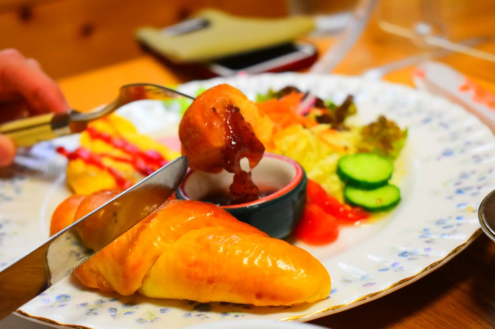 ナイフを入れると肉汁がじゅわ~っとあふれ出しました。
