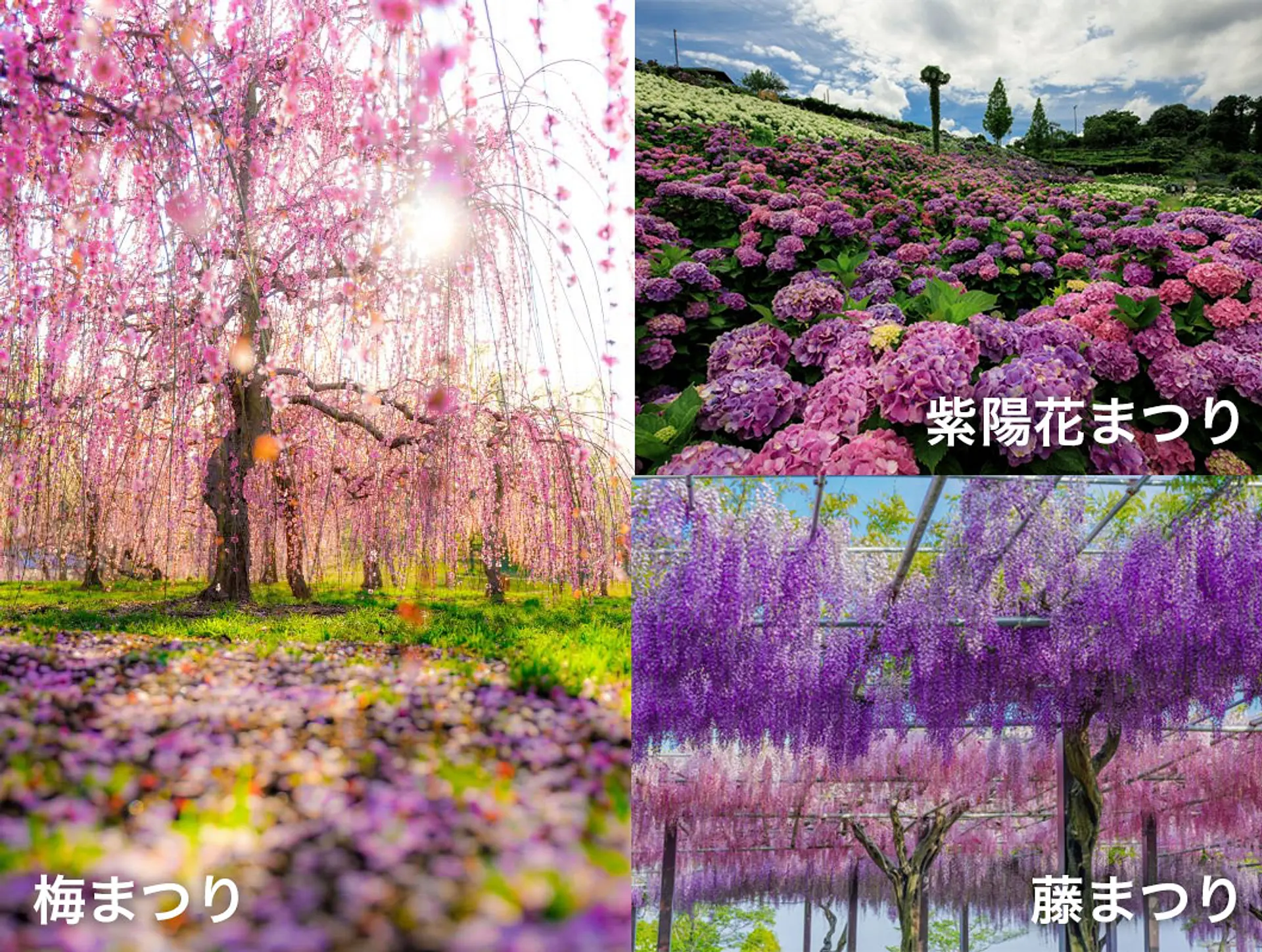 津市久居戸木町(ひさいへきちょう)の伊勢温泉ゴルフクラブ内にある花園。3月は梅、5月は藤、6月は紫陽花、と1年に3シーズン楽しむことができます。
