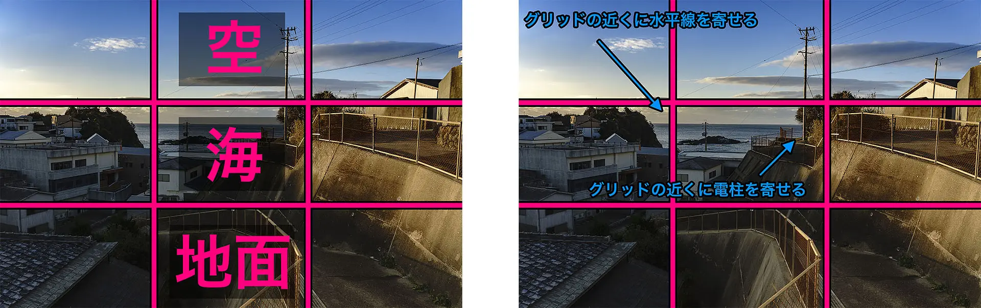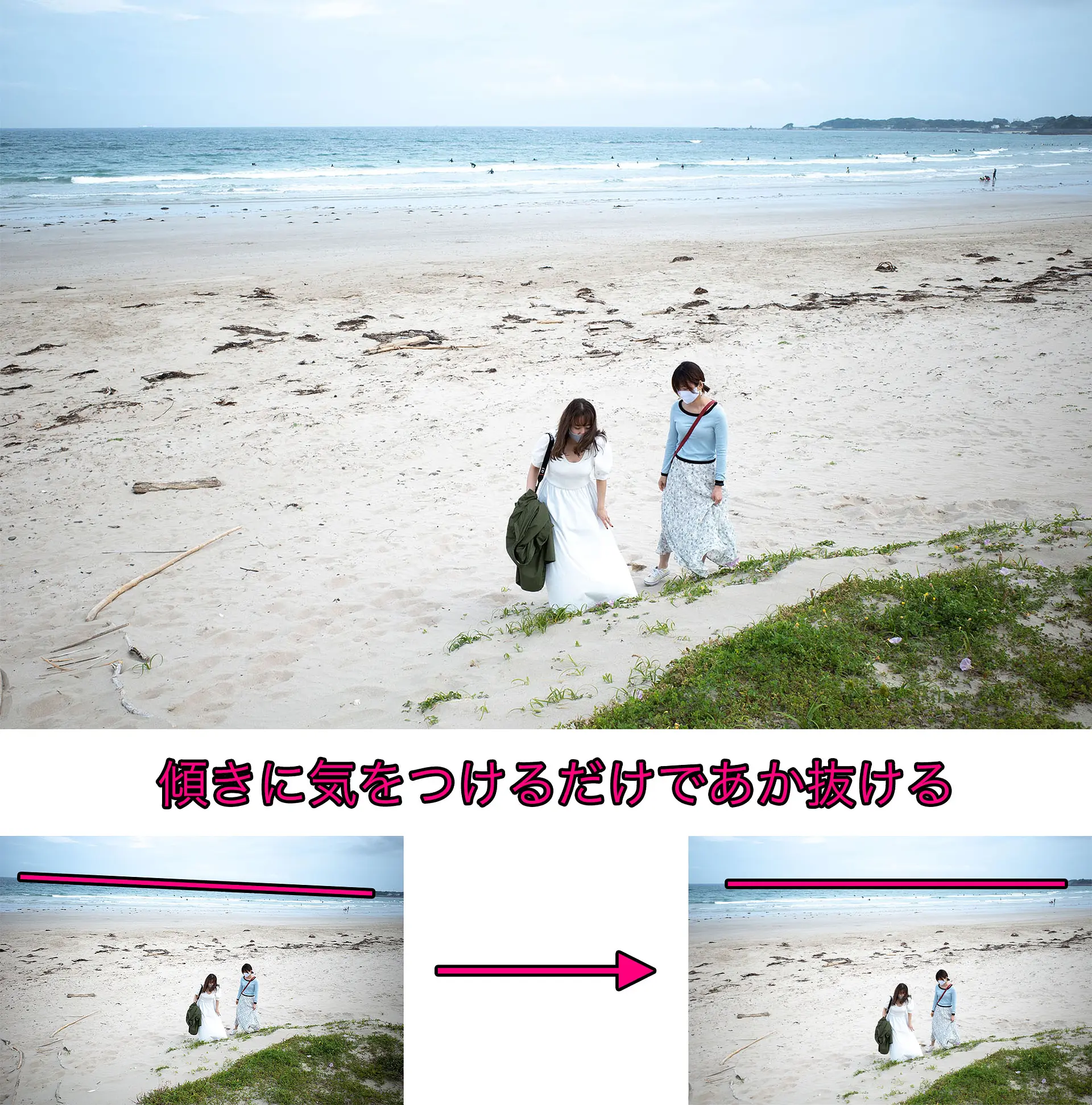 たとえば水平線が水平になっているだけで、写真があか抜けて見えます。