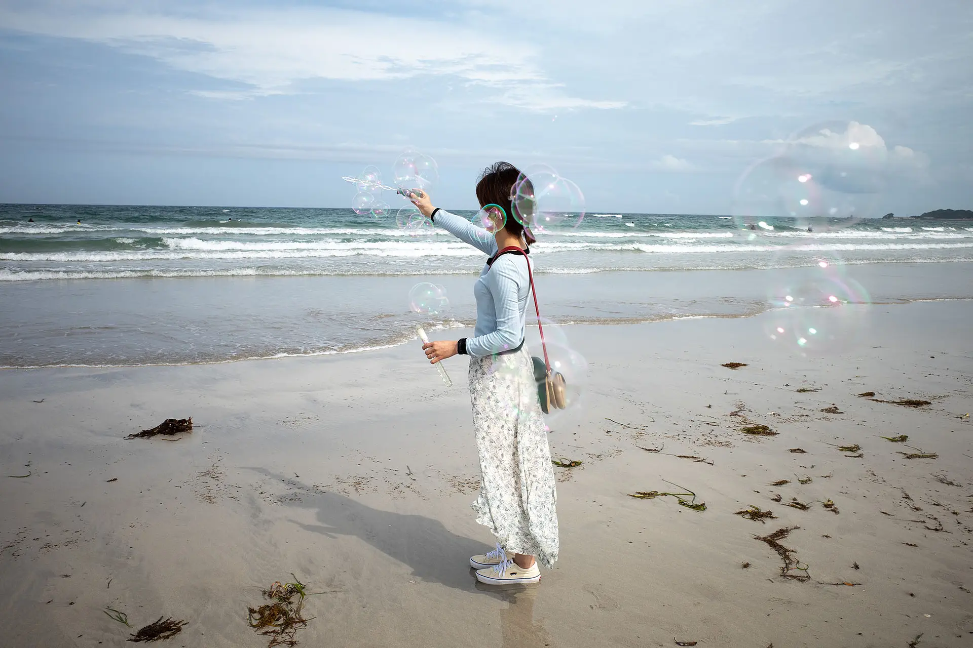 夢中になりすぎてシャボン玉が目やレンズに当たらないようにしましょう。