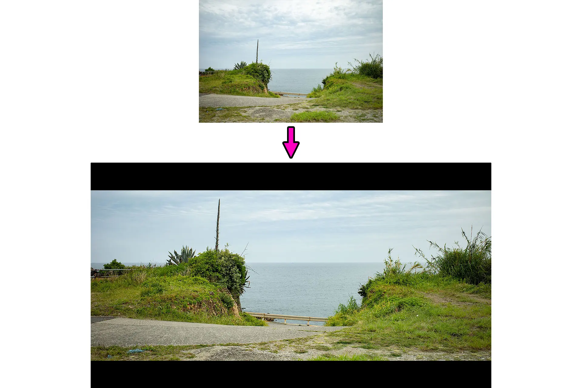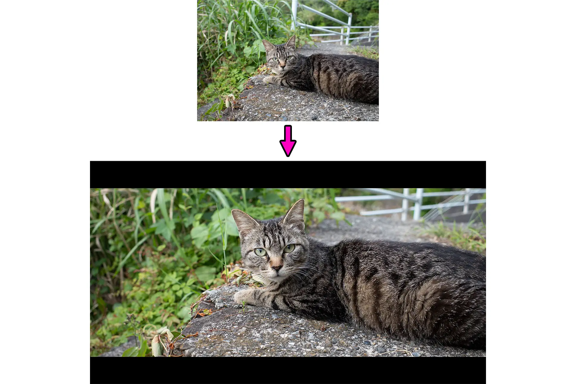 写真を切り抜いたら、アスペクト比が「16:9」になるように黒枠をつけます。